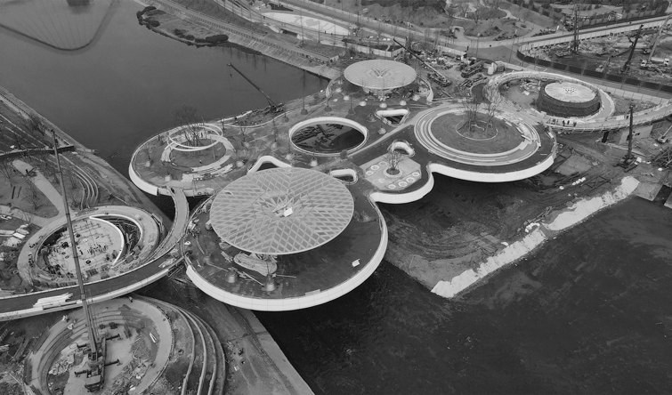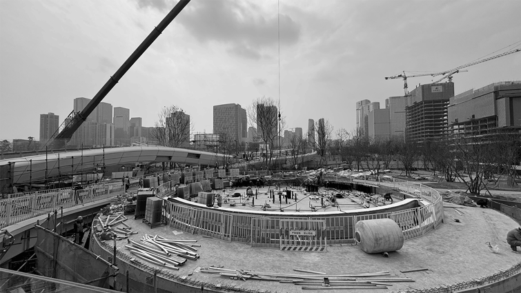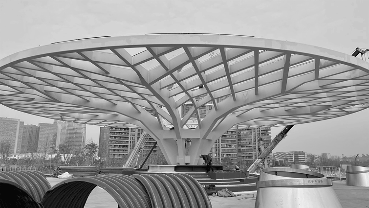 ▼三个巨型廊架实施过程,Construction Process of the Three Giant Colonnades