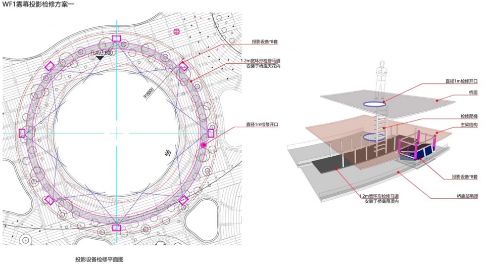 ▼雾幕投影布置及检修方案,Projection Setup and Maintenance Plan for the Mist Screen