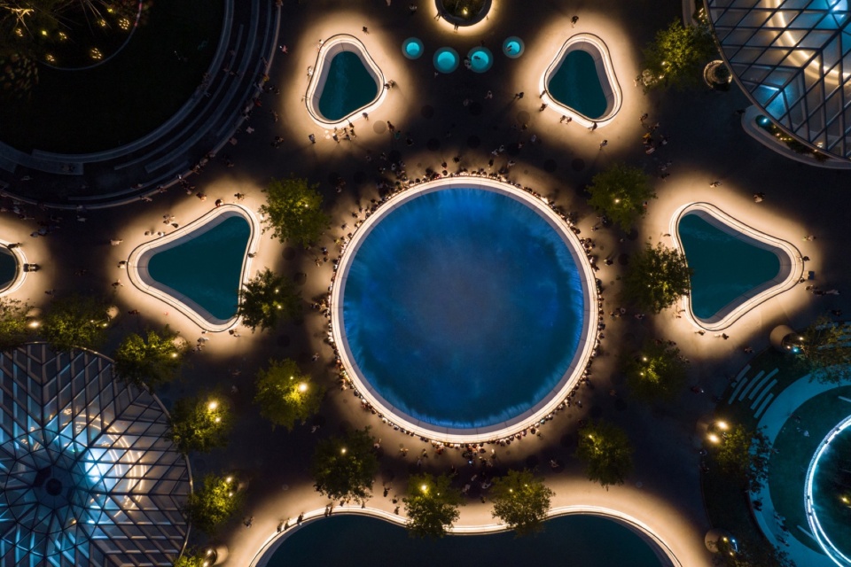 ▼空中俯瞰环雾草坪,Aerial View of the Circular Mist Lawn