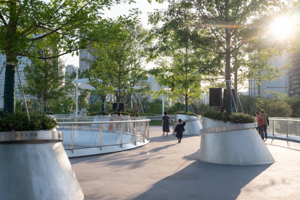 The Jiaozi Pedestrian Bridge Park is a key urban green link within the Financial City district and serves as an essential green corridor for nearby residents. As the Financial City East District continues its construction phase, this green connection will play a pivotal role in attracting citizens to the Jiaozi Green Axis Park and the riverside greenway. With the planned development of surrounding industries and the introduction of various commercial and service-oriented functions, new consumption patterns driven by human activity and gatherings will emerge.During the early stages of planning and design, this factor was anticipated, and provisions were made in the spatial layout and functional design to accommodate future demands.