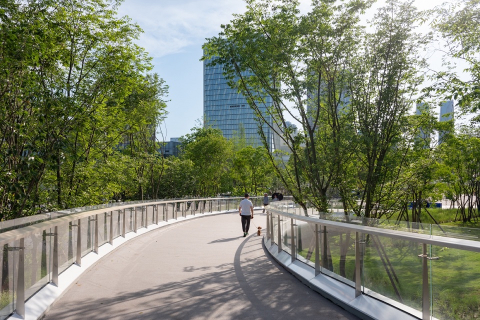 ▼从桥面公园望向金融城片区,View of the Financial City District from the Bridge Park