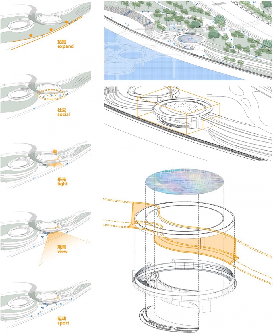 ▼桥下空间的退让与利用,The space beneath the bridge is both reserved and creatively utilized