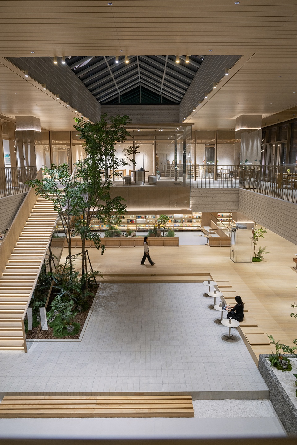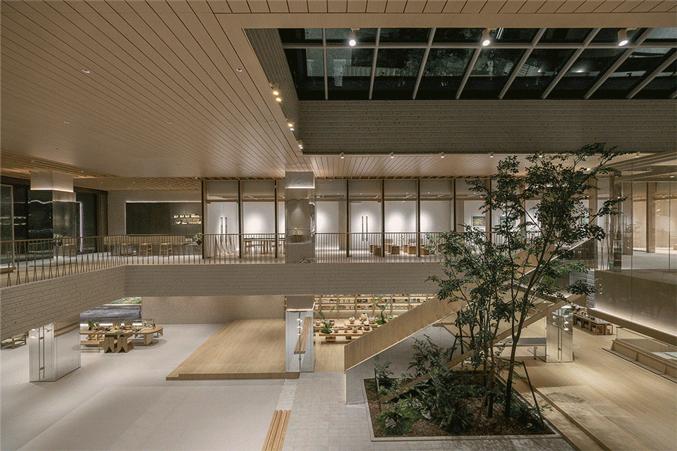 开阔的中庭,设计师打造了一个中心广场,种了一棵精神符号的“树”。大家都可以在树下分享交流,随意落座,当天窗的光线渗透进来,令人动情的村落广场记忆也涌现出来。广场还可供人们举办演出活动,一二层的不同位置都可以看到表演,就像小时候村口的集体大舞台。