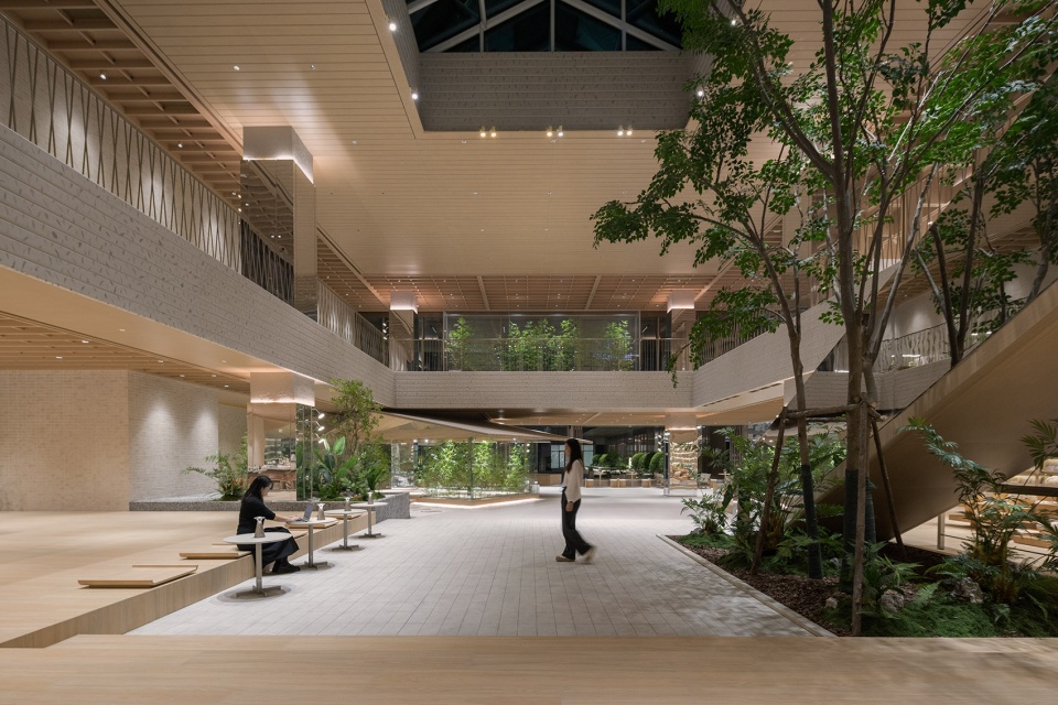 In the expansive atrium, the designers created a central square and planted a symbolic “tree” as a spiritual focal point. Everyone can gather under the tree to share, communicate, and sit freely. When skylight filters in, it evokes emotional memories of village squares. The square also serves as a venue for performances, visible from various points on the first and second floors, reminiscent of the collective stage at the village entrance from childhood. This design fosters connection, nostalgia, and community engagement.