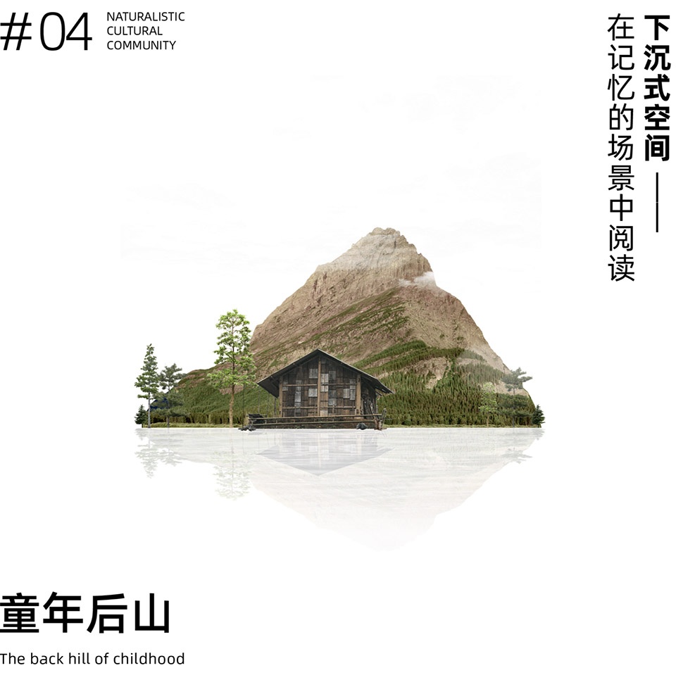 儿时的家乡,房子后面是院子,院子连向后山,记忆里溪鸣虫唱的后山,也是“家”的一部分。设计师将这个情景放在了下沉式阅读空间的部分,自然、质朴、浓浓的书区氛围,结合露营场景的打造,增添了一丝神秘与探索的意味,重拾童年的美好记忆。