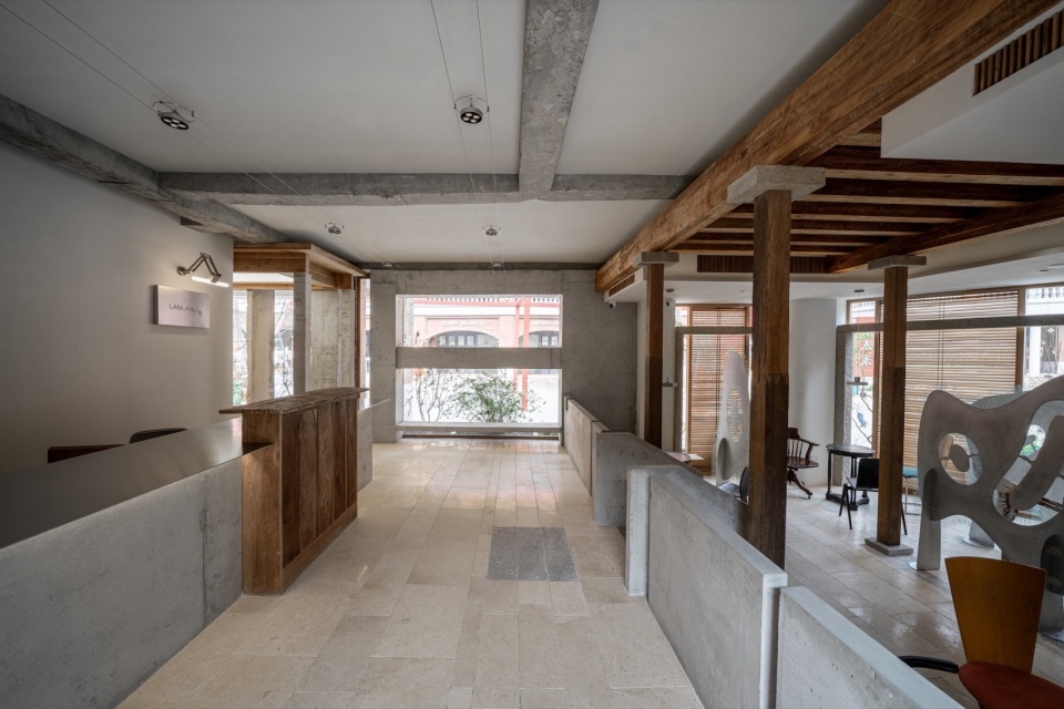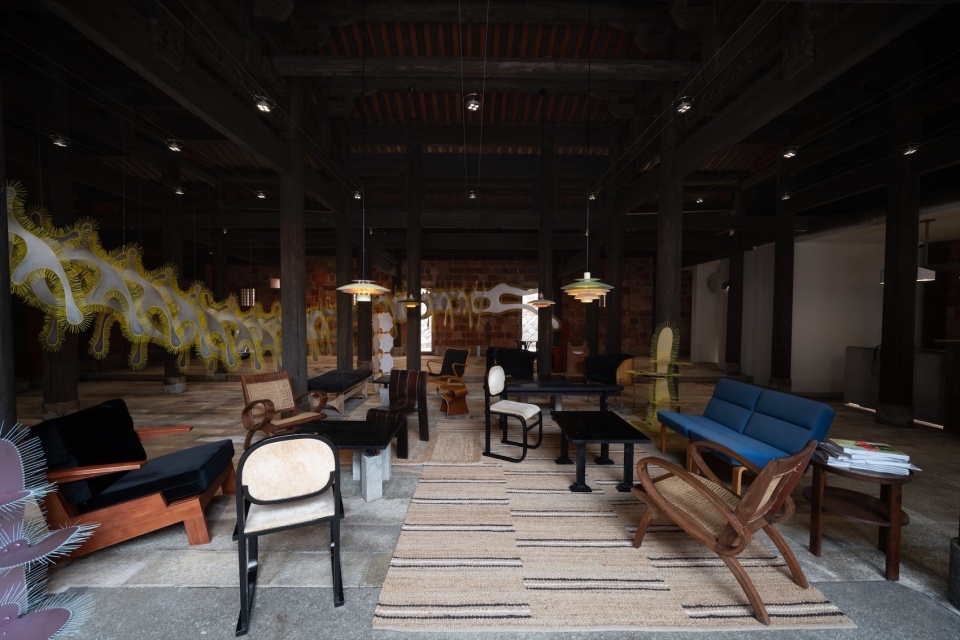 此次设计基于两栋不同时期的闽南建筑(传统古厝与1980年代红砖楼)进行改造,在保留和整理传统建筑语言的基础上,DEVOLUTION退化建筑通过克制的元素处理和介入——混凝土体块和温润的野生柚木及泉州白石的拼贴;南洋桌椅和1970-80年代的现代主义家具与灯饰的交互等,让这个空间既传统质朴又不乏摩登,闪现一些碰撞的趣味。
