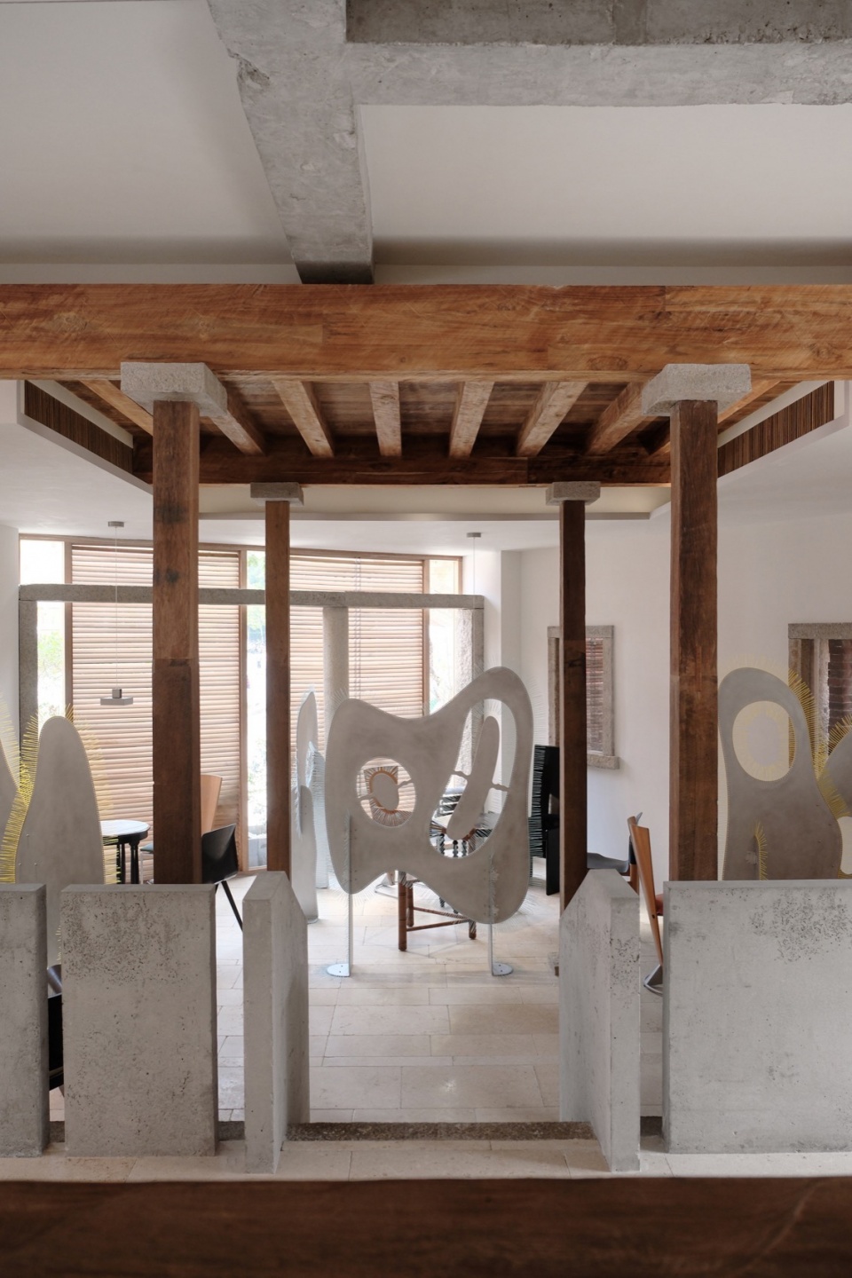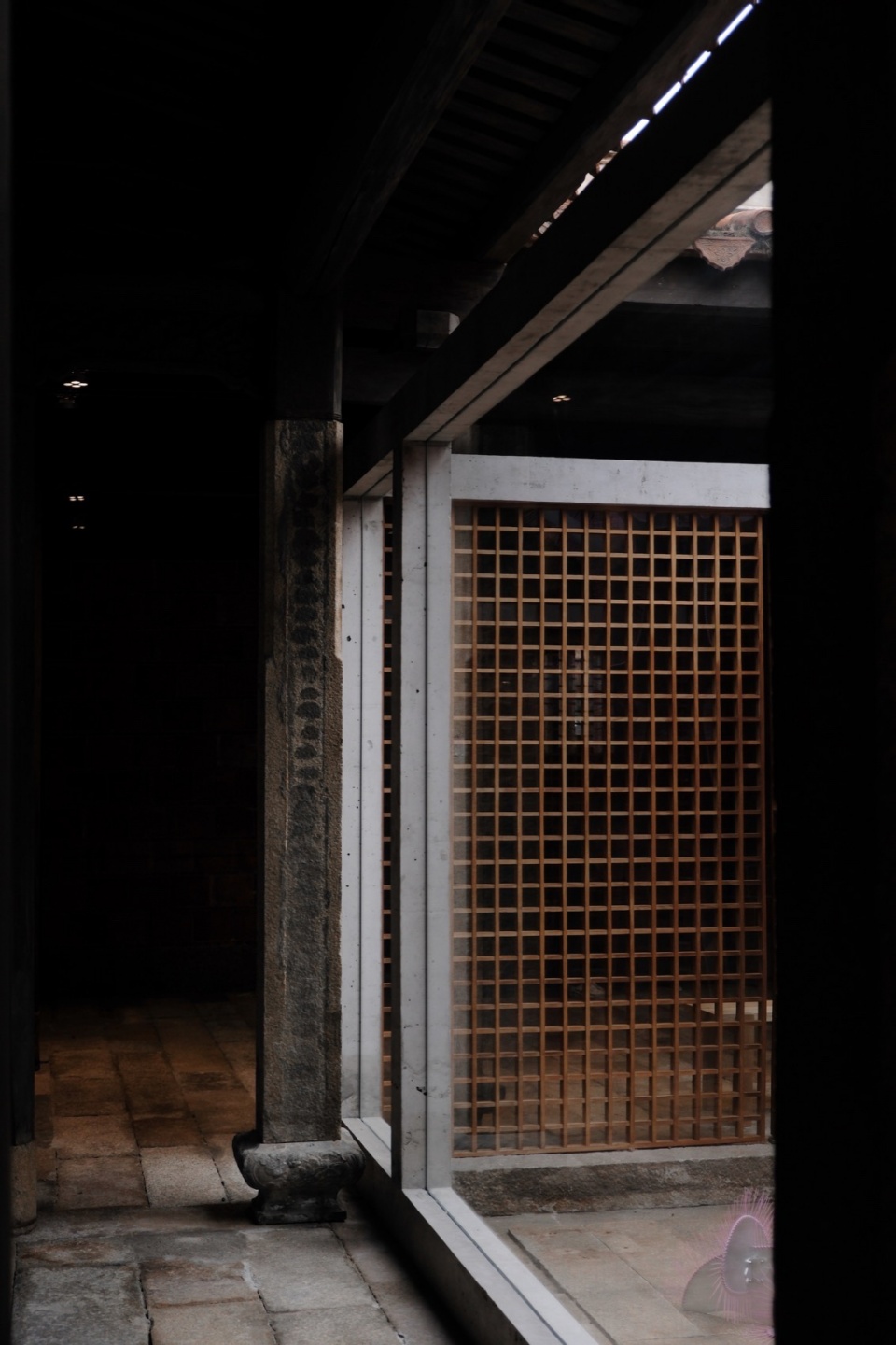 concrete blocks, warm wild teak, and Quanzhou white stone