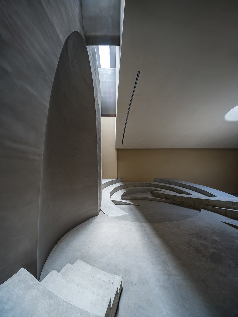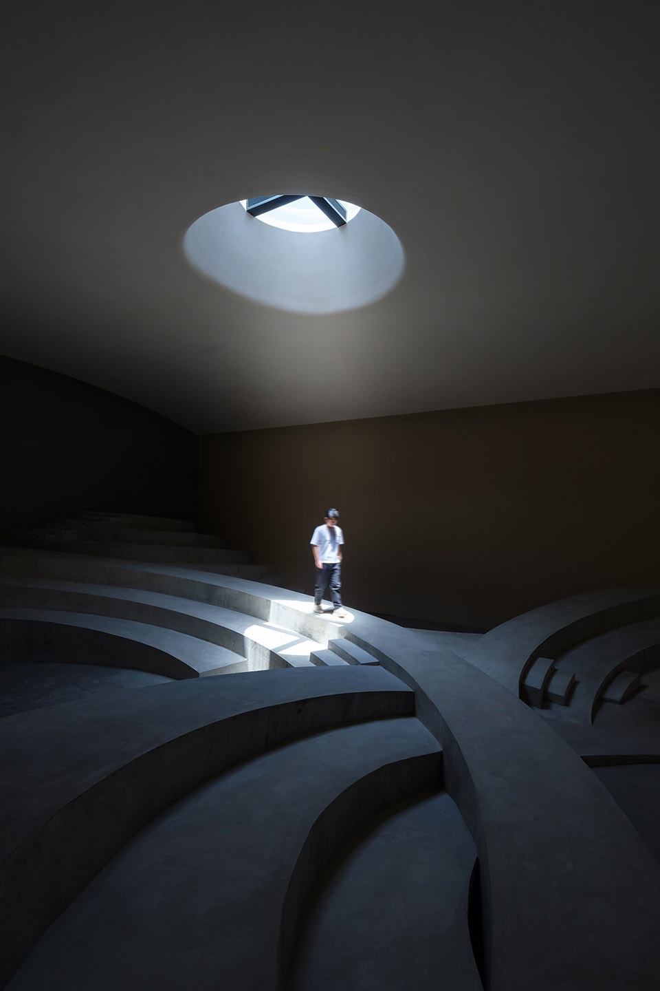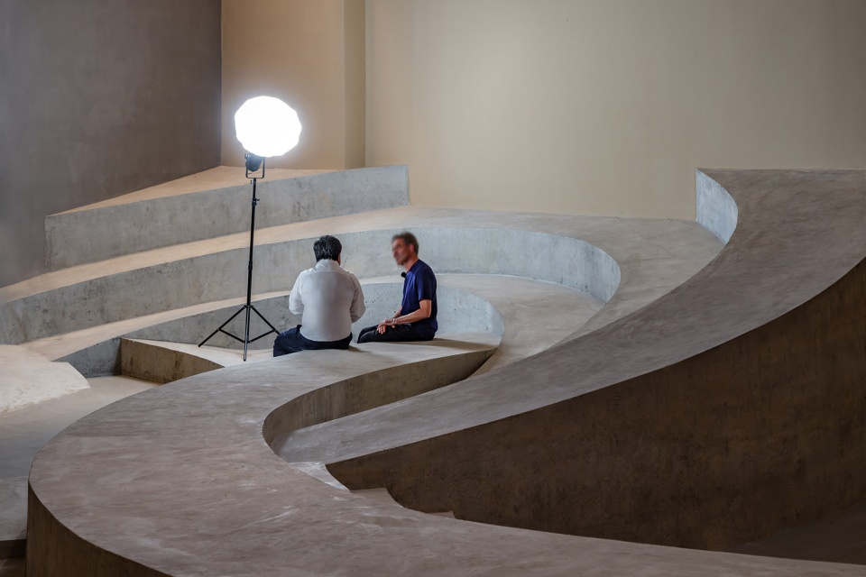 SpActrum has recently completed the M2 Training Centre in Hangzhou, China, a space designed around the concept of an amphitheatre. The architecture firm has created a multi-centred interior landscape by overlapping three sets of concentric circles, advancing traditional stepped spaces into a fluid, rippling terrain. This design unlocks a versatile space capable of accommodating a wide range of functions. The space is intentionally ambiguous in its purpose. While it serves as a training facility for the corporate headquarters, it also holds potential for exhibitions and filming.