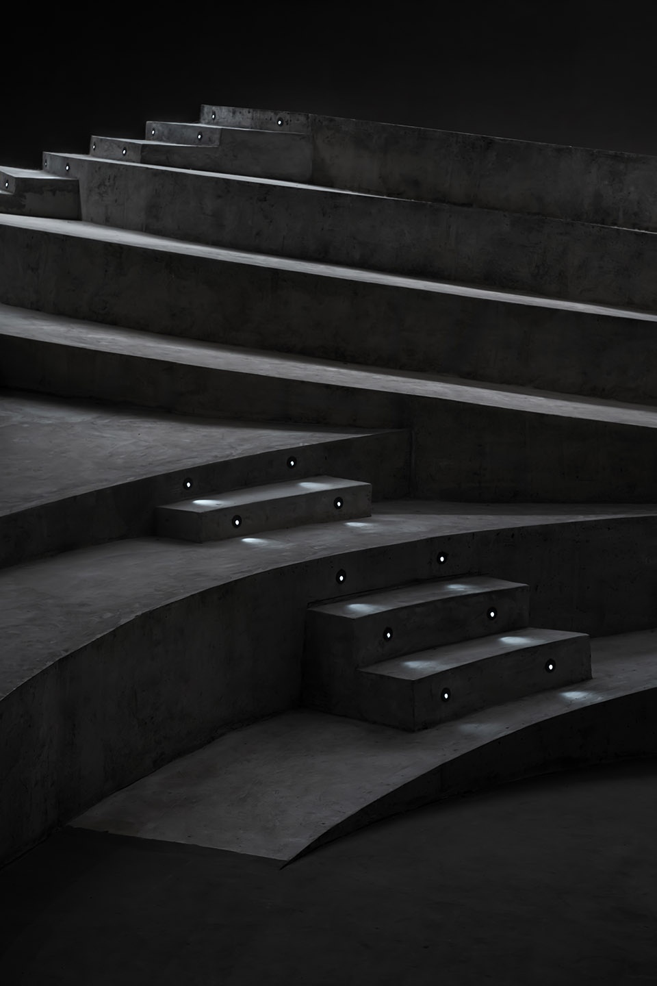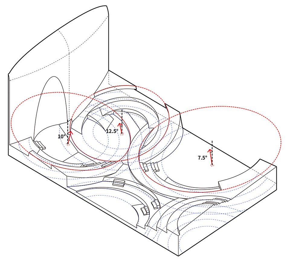 SpActrum drew inspiration from the ancient prototype of the amphitheatre, where seating and performance are intertwined, and envisioned three interlocking sets of concentric, stepped spaces. Together, these form a continuously shifting terrain. The design process involved constant adjustments to the geometric parameters of the three concentric circles. Key parameters include: