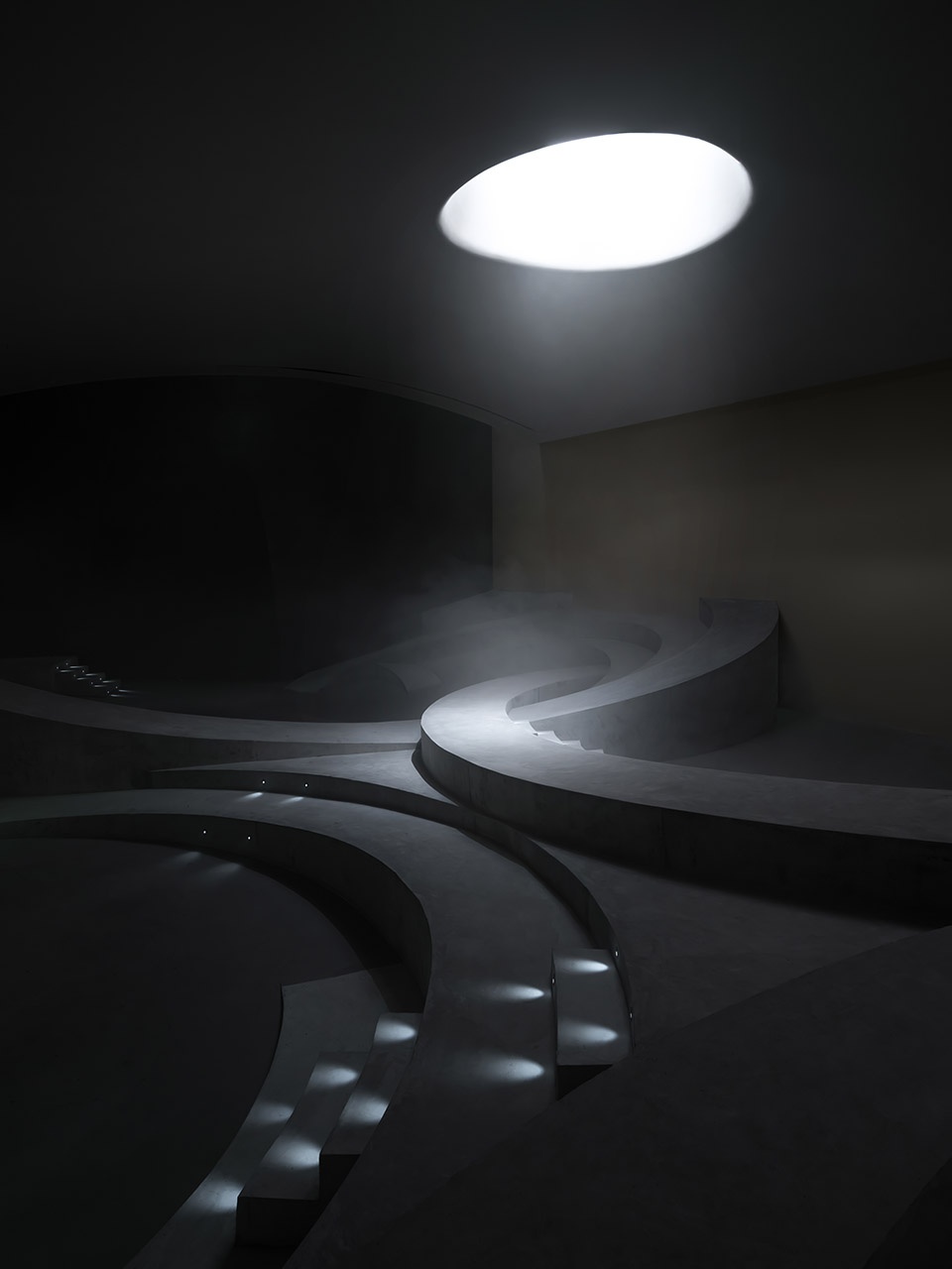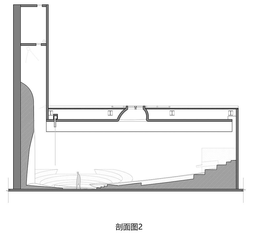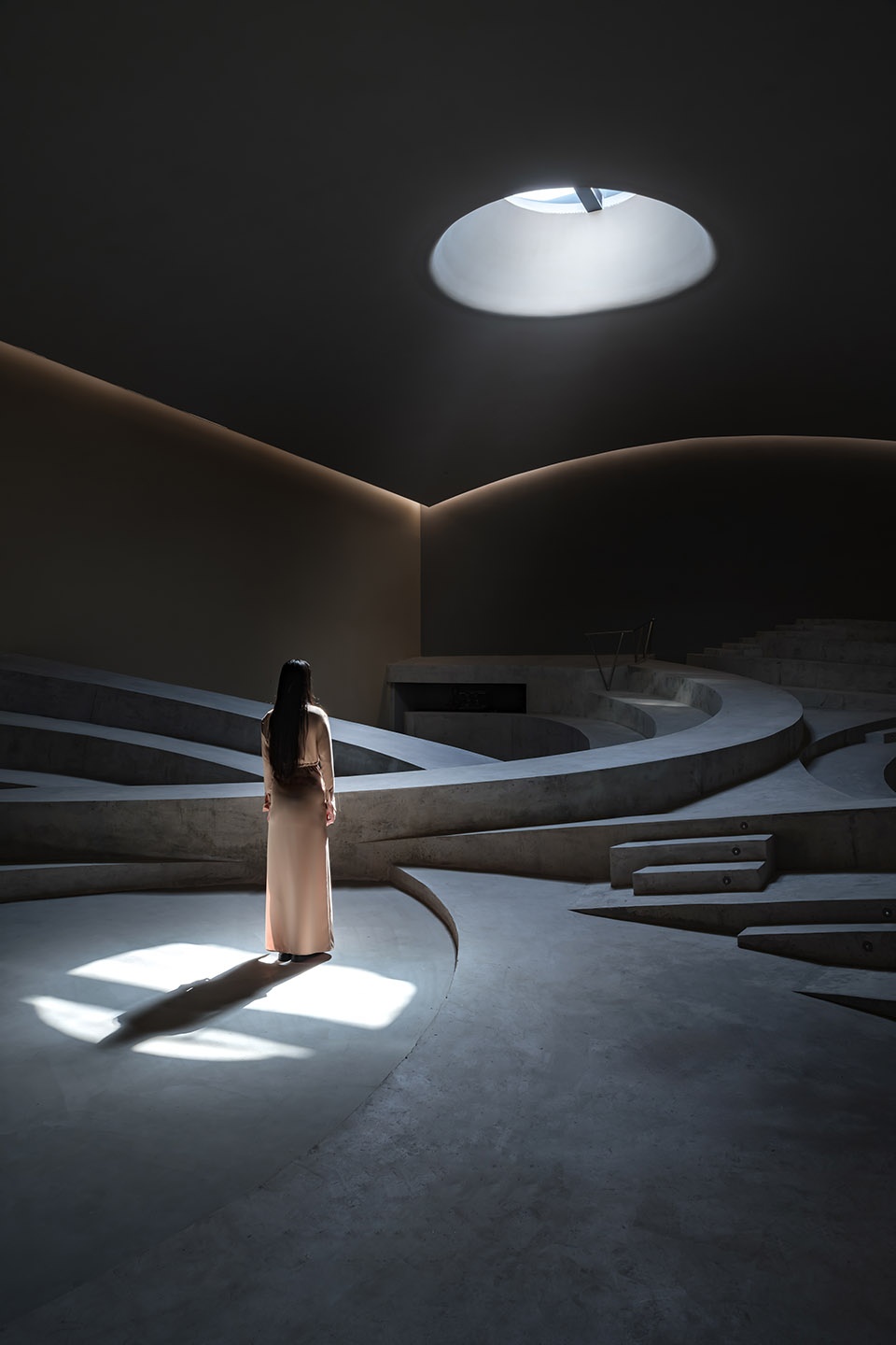至此,一个室内的地景完整地展开了,聚集、分享、通行,空间不再赋予行为独一无二的定义,而是一如自然中的大地,人作为具有适应力、想象力的实体,依照大地的走势,寻找自己的移动路径、行为方式,并与之互动。空间以其参数属性提供一种趋势,促成某些再次被唤起的活动,但并不刻板地定义这些活动的边界。