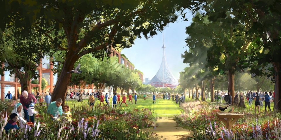 Informed by the city’s incredible history, the sports-led regeneration project would transform the one-million square metre brownfield site into a thriving mixed-use district, with a network of green civic spaces, streets, bridges, and waterfront areas. Setting a new international benchmark for sustainable city developments, the project forges direct transport and pedestrian connections between new and existing communities – and the wider city – while harnessing opportunities for rainwater collection and renewable energy. The potential removal of freight trains from the West Coast Main Line would act as a catalyst for the project by increasing passenger numbers to Manchester Piccadilly and the north-west region, creating better rail connections with Liverpool, and freeing up land for the Old Trafford Stadium District.