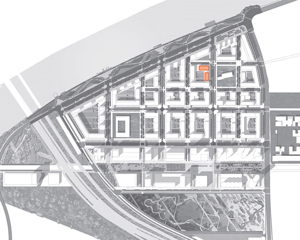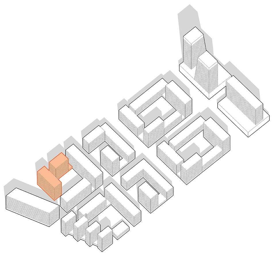 A selected team of architects developed the assigned parts of blocks in narrow collaboration with one another under the curatorship of Meganom and a district curator, in this case TLP. Buromoscow developed lot 12, designing two buildings on a joint base.