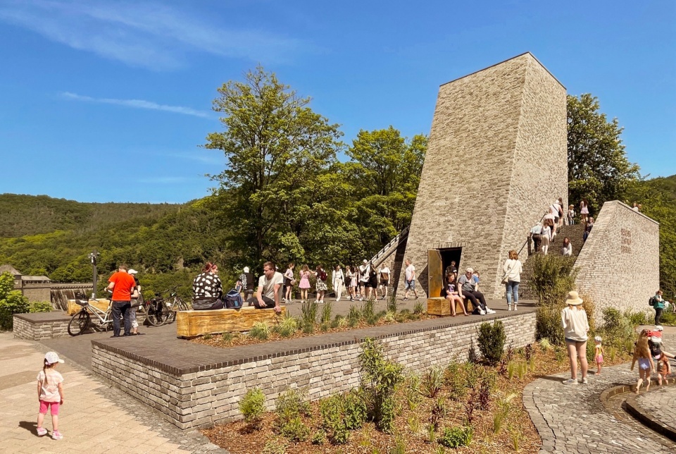 游客中心的核心概念与埃德湖大坝(Edersee Dam)紧密相连——这一标志性建筑深深植根于当地社区的身份认同。大坝见证了该地区从贫困的乡村转变为全国瞩目的旅游目的地的历程,并承载着丰富的历史记忆。从100多年前的帝国时代建设,到二战时期的毁坏与重建,再到如今成为绿色能源枢纽和自然文化景观中的重要地标,大坝始终是这片土地的重要象征。