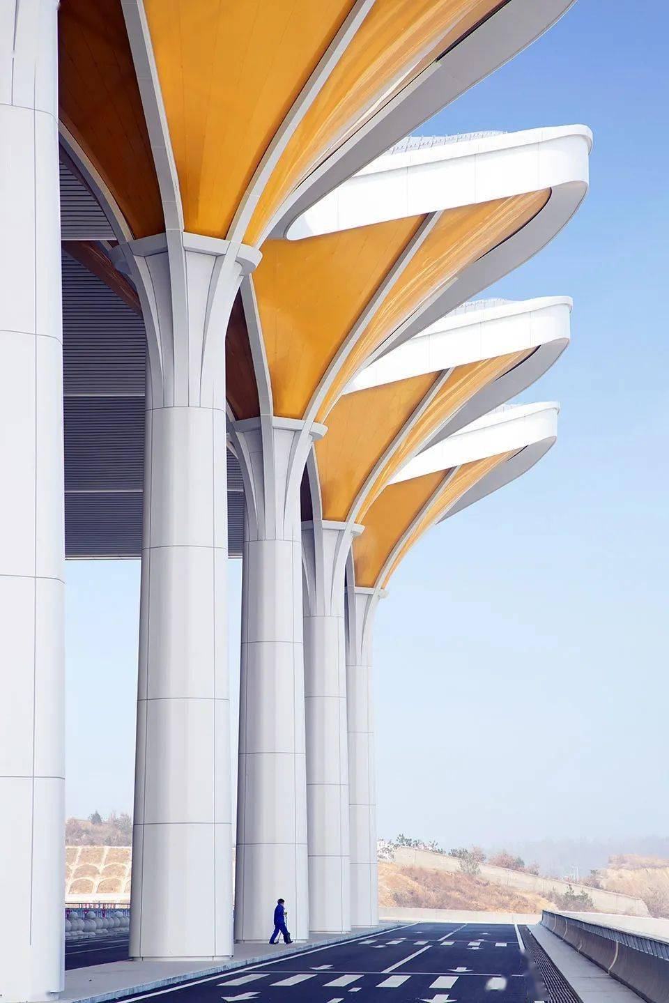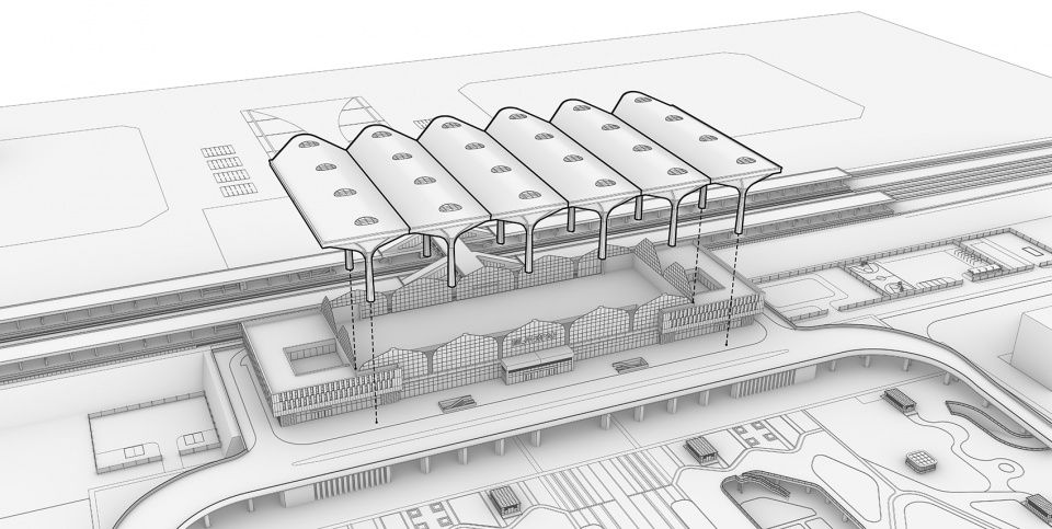 Inspired by nature, Suizhou South Railway Station abstracts the form of Ginkgo leaves into the natural artistic conception of "under the ginkgo tree". The main structure adopts the "umbrella shaped unit body", which is covered with a light yellow skin. As the basic unit of the body, it creates a forest like space and presents the design theme of "Millennium ginkgo, ten mile Gallery" in a modern way. A number of "umbrella shaped units" form a tall and straight tree structure, which is connected into a dynamic shape roof to form a spacious and bright main waiting space. The horizontal volume composed of vertical panes on both sides extends outward to form a ticket selling and departure space. The high and low architectural images reflect each other like ancient trees and villages, which is in line with the local characteristics of the Millennium ginkgo Valley in Suizhou.