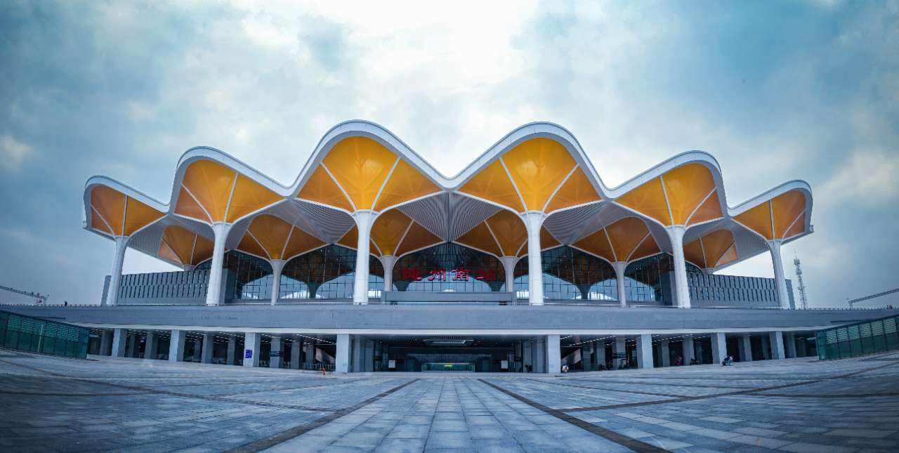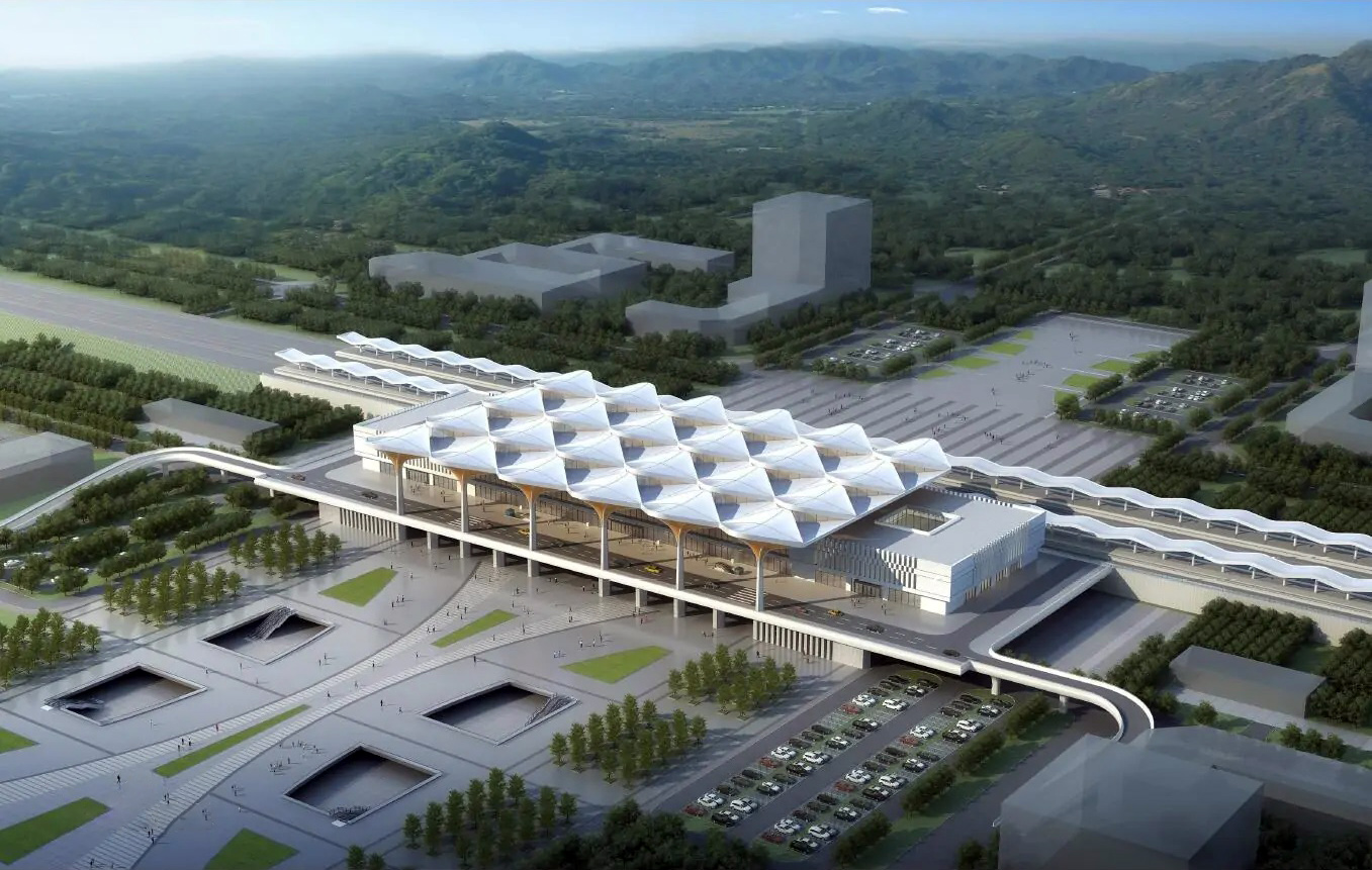 By november2019, the building area of Suizhou south railway station is 20000 square meters, which can accommodate up to 3000 people waiting at the same time. The facial mask structure of the station house covers an area of more than 10000 square meters and consists of 24 umbrella structures, each of which is 27 meters long, 24 meters wide and has a projected area of about 648 square meters. The passenger entrance overpass is 12m wide and the passenger exit tunnel is 8m wide. One horizontal comprehensive maintenance workshop and four wires are set at the west side of the station.