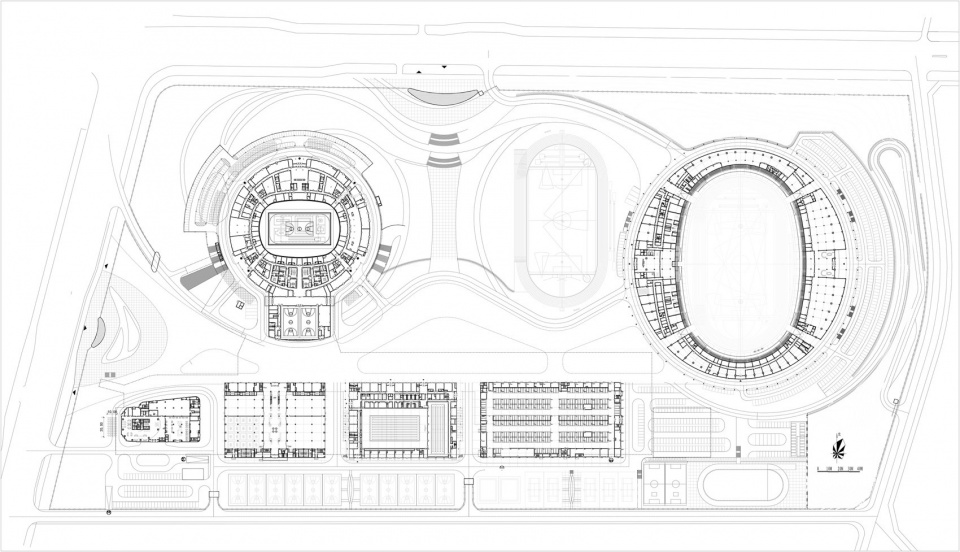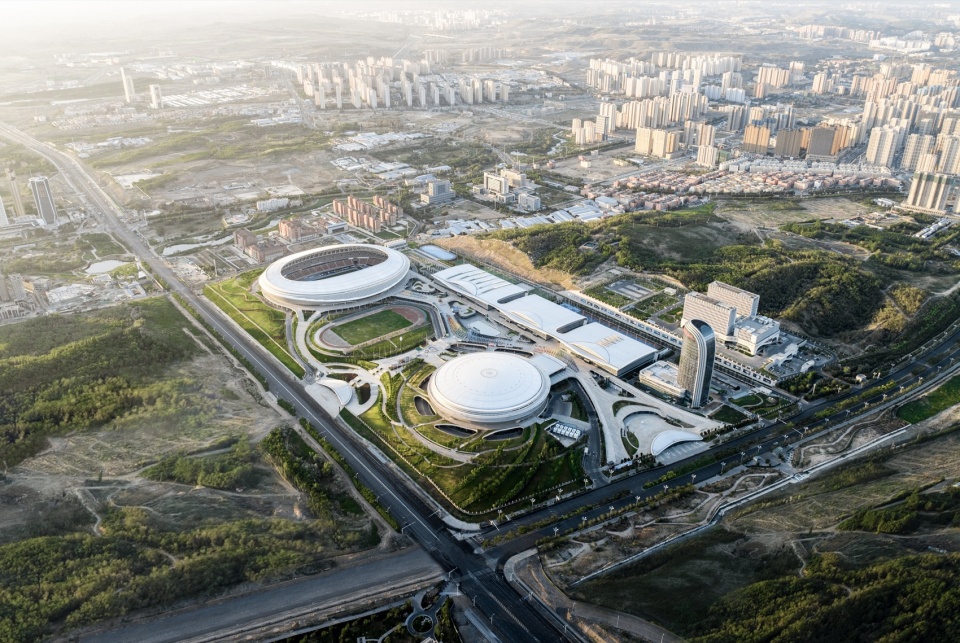As an important sports and cultural venue facing the future, the Urumqi Olympic Sports Center integrates a 30,000-seat stadium, a 12,000-seat gymnasium, a 3,000-seat natatorium, a national fitness center, a comprehensive track and field stadium, an athletes’ hotel, and a sports park, forming an efficient and composite cluster of sports buildings. Through multiple construction logics of site adaptation, form generation, structural expression, and spatial narration, the design responds to the dual demands of regional culture and urban development.