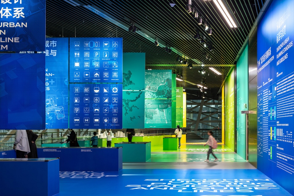 On the basis of fully investigating and understanding the pain points of the existing exhibition space, PILLS has implemented multiple context-specific design strategies for the upgrading and transformation of Shenzhen Contemporary Art and Urban Planning Museum. It establishes a flexible information interface through the L-type suspended light box system that is perpendicular to the exhibition wall; it changes a single flat exhibition wall into a staggered dynamic exhibition wall to form a dynamic and changeable spatial rhythm, and pays attention to the design of the detachable display booth to form a flexible exhibition system, effectively realising the goal of creating an immersive exhibition space. And it effectively realizes the restructuring of the function of the exhibition area and the enhancement of the space; the colour zoning strategy combined with the coordinated floor graphic system, transforms the lofty space into a logically structured immersive exhibition environment, where the spatial progression is experienced through gradual color transitions. The application of intelligent sensor devices also strengthens the visitor engagement mechanisms. The renovated Shenzhen museums are now more readable, interactive, playable, informative and flexible, giving Shenzhen and the Greater Bay Area the adaptive capacity to dynamically respond to the urban development process, building a sustainable and renewable exhibition infrastructure, and establishing in-depth links and dialogues between exhibitions and the public.