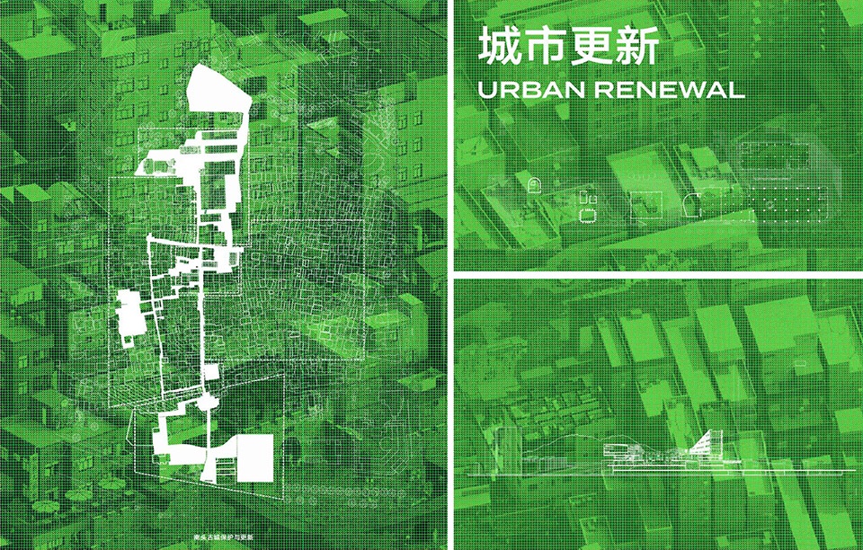 In terms of renovation strategy, we choose to retain and optimise the use of the existing iron frame structure, adding a system of perpendicular panels relying on the exhibition frame, creating an urban jungle and forming a labyrinth-like tour experience; and through the display of large-scale renderings, we enhance the visual expression of the content to strengthen the readability, interactivity and spatial attractiveness of the exhibition.