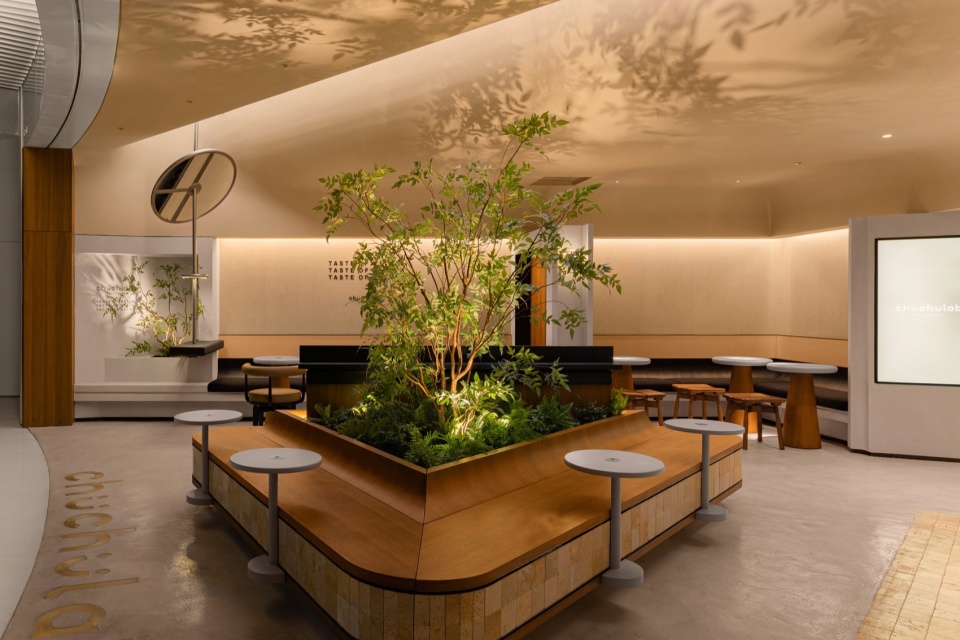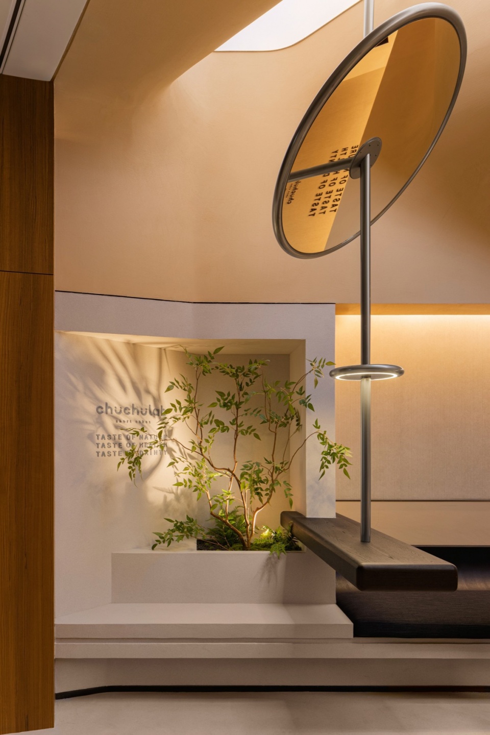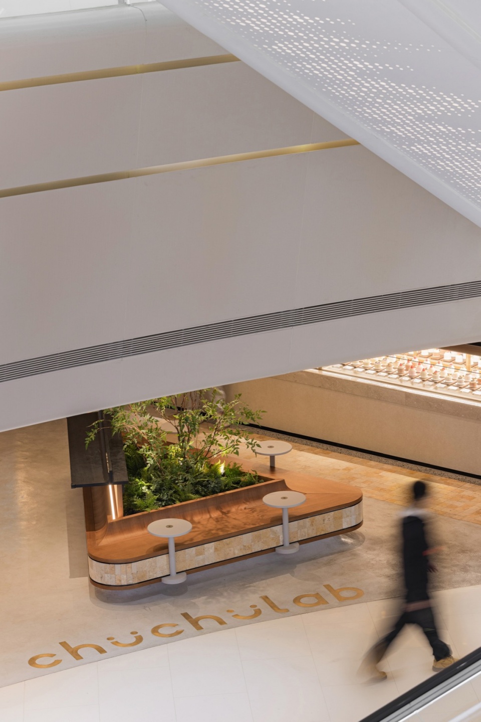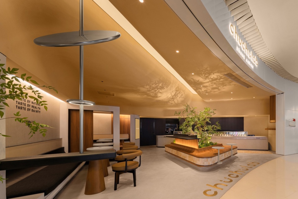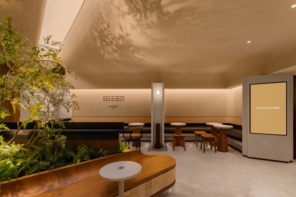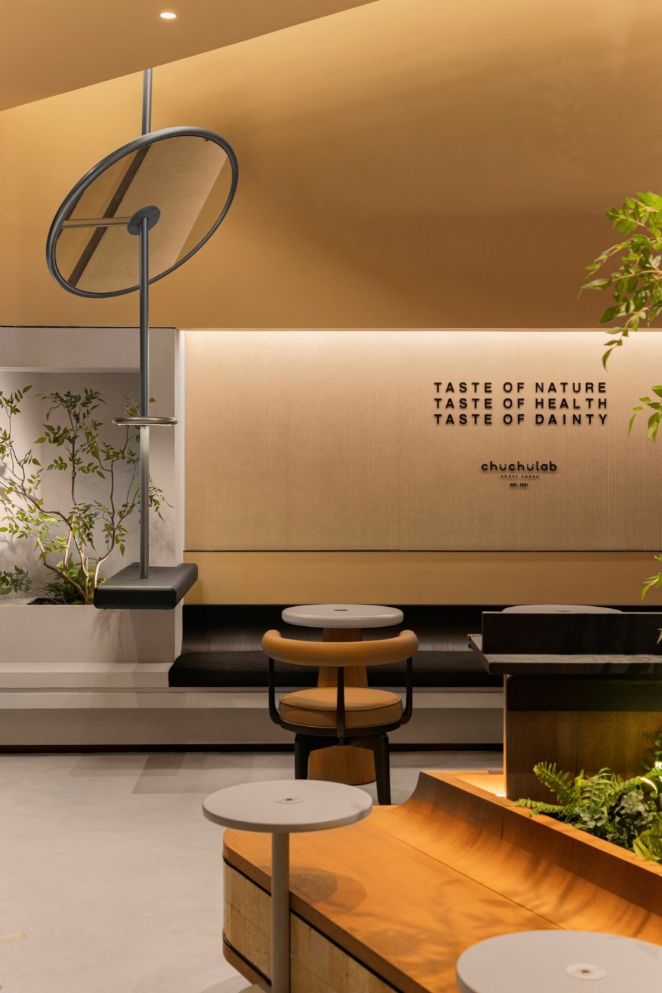 The brand new chuchulab is located on the basement level 1 of the mall. The lack of natural light on this level was slightly depressing and was one of the issues that needed to be addressed during the design process. Using this location as a starting point, we introduced the concept of the urban valley as a natural and interesting design concept, incorporating a breathable oriental mood into the dessert. The chuchulab is wrapped in warm colors with emotional temperature, and every detail in the space is our understanding and expression of the aesthetics of life.