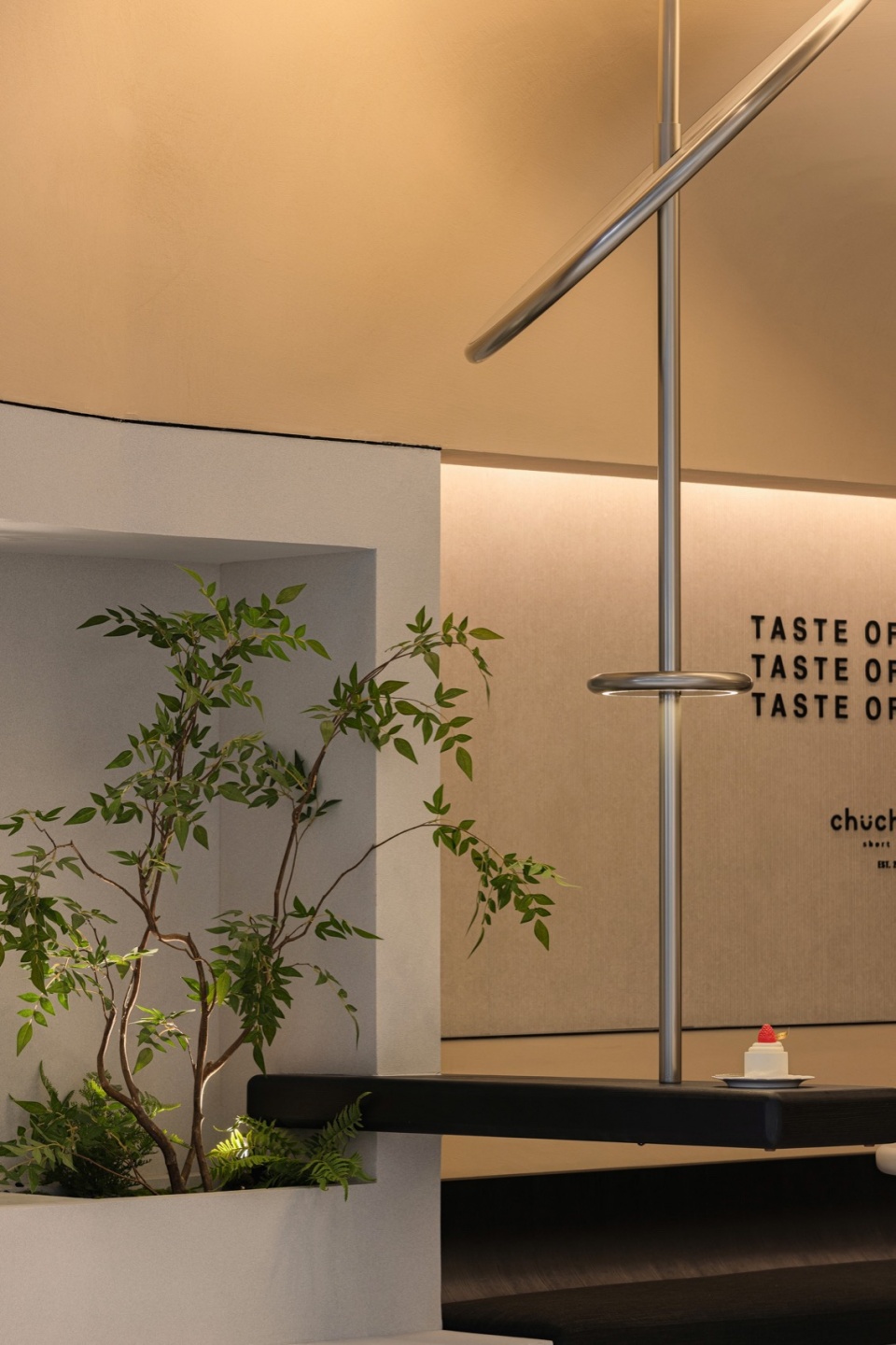 全新的chuchulab位于商场的负一层。缺乏自然采光的楼层略显压抑,也是设计过程中需要处理的问题之一。这次,我们以此地理方位为切入点,引入了城市山谷这一富有自然意趣的设计概念,把具有呼吸感的东方意境融入甜品中。带有情感温度的温润色彩包裹着chuchulab,空间内的每一处细节,都是我们对生活美学的理解与表达。