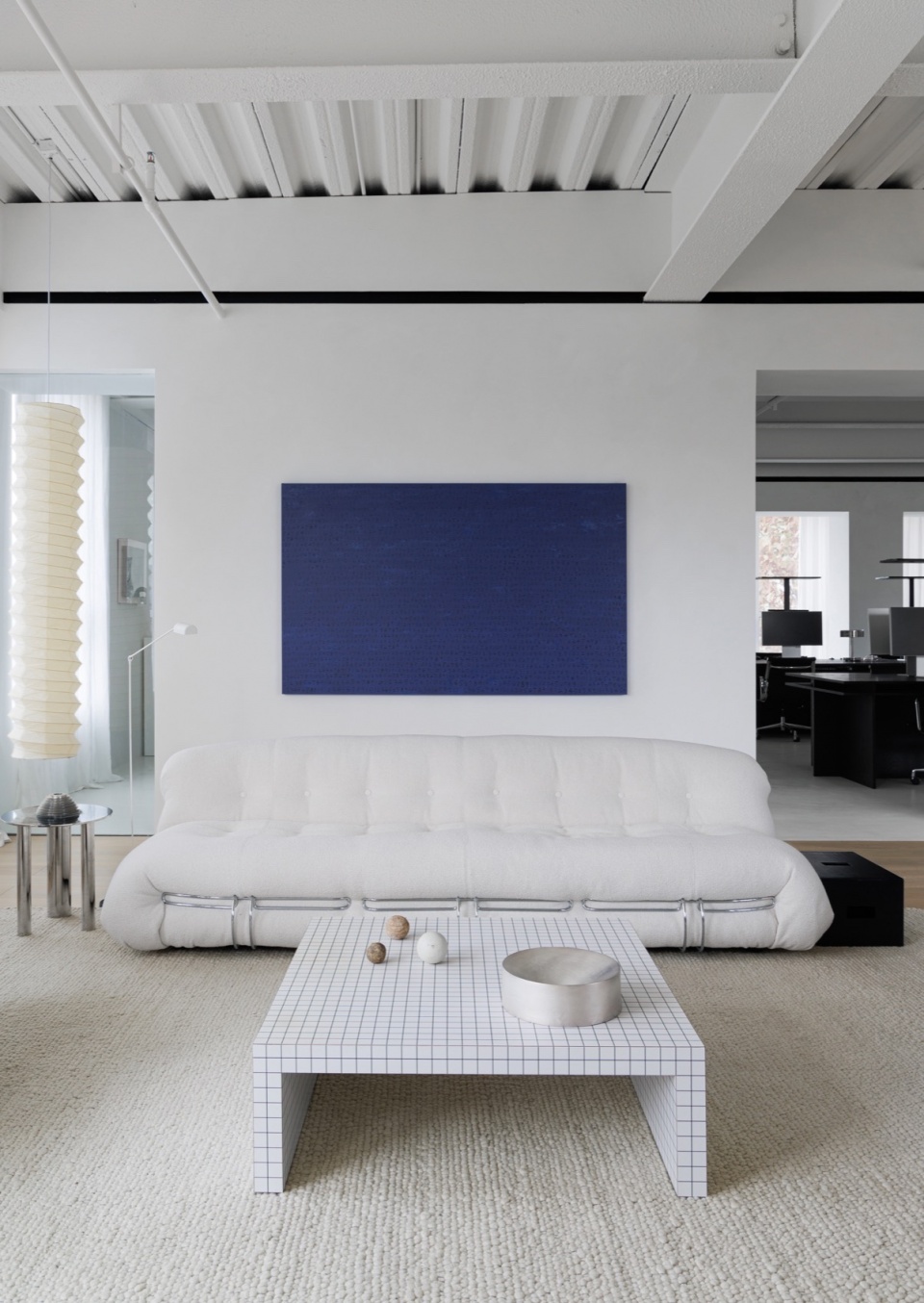 ▼从会客区看向白色长桌,View from the reception area to the long white table