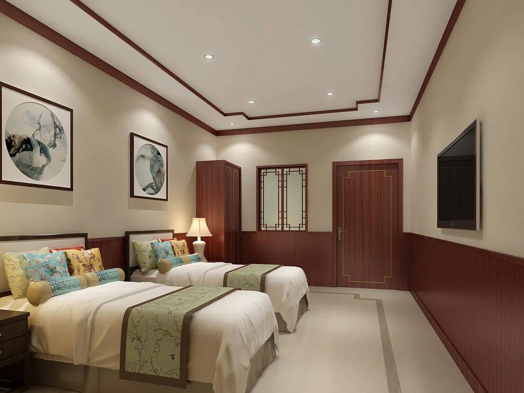 As the area where patients rest and stay for the longest time, the decoration design of the ward should be harmonious, emphasizing tranquility and elegance, so as to support people physically and mentally. The designer considered that the ward should be plain and plain, so that there was no too much decoration, but mainly wooden decoration. Simple wooden panes with wall paintings showed calm, calm, beautiful and gentle.