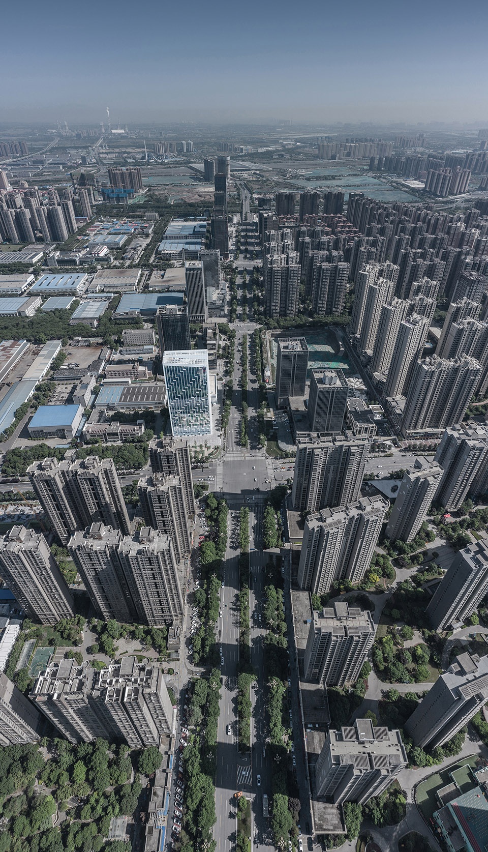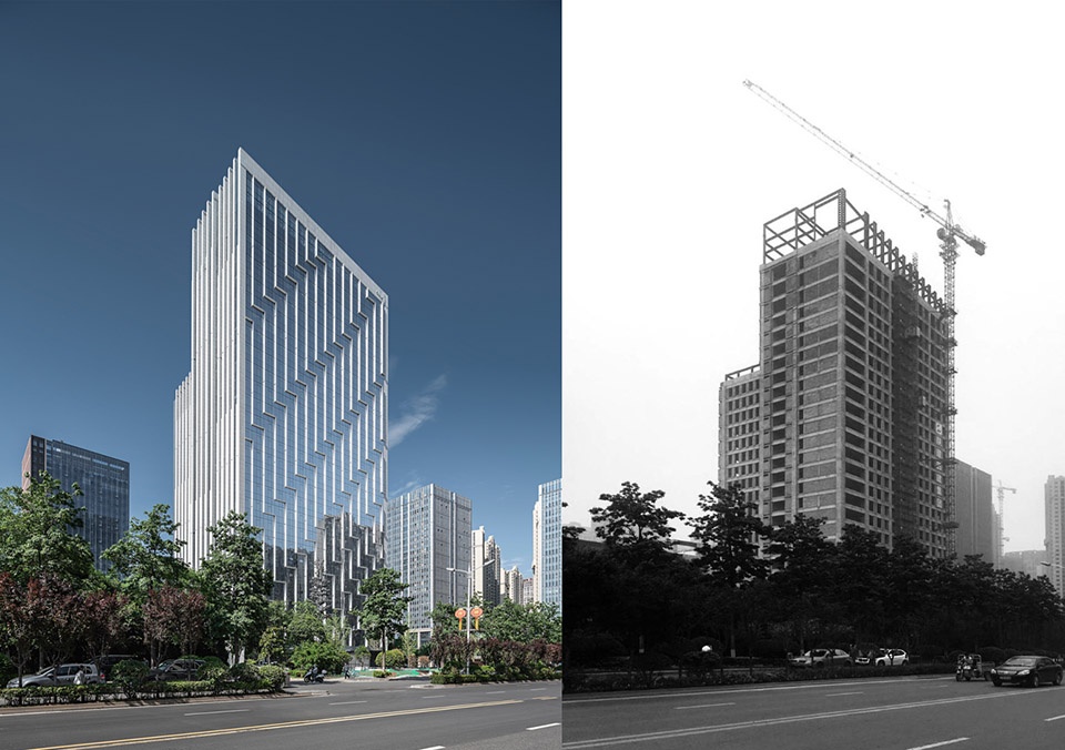 The original function of the Chinlink International Center was the research and development of new electronic composite materials. It is a comprehensive building that integrates office and experimentation facilities. It consists of a 100-meter-high office tower and a podium. However, because the original building’s interface did not meet the requirements of the urban planning landscape axis, and the owner’s experimental research and development building had been relocated elsewhere, the function of this building needed to be re-planned and repositioned for various complex reasons. The main structure, originally designed to be completed, has stood at the intersection as a stock asset for many years. Finally, in 2017, under the opportunity of the urban planning department’s re-planning guidance and the owner’s renewal function positioning, it was proposed to transform the original structure of the building to create a design that conforms to the current urban function replacement and urban interface update.