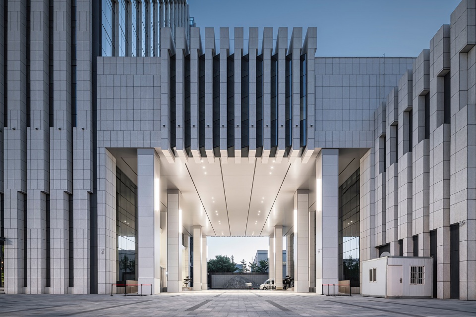 The design has reorganized the original architectural plane grid. Regarding the irregular size of the local modulus, caused by unknown reasons, it has been trimmed by fine-tuning the position of the external stone or decorative gusset of the stone curtain wall and glass curtain wall, so that the facade obtains a more accurate mathematical aesthetic feeling.