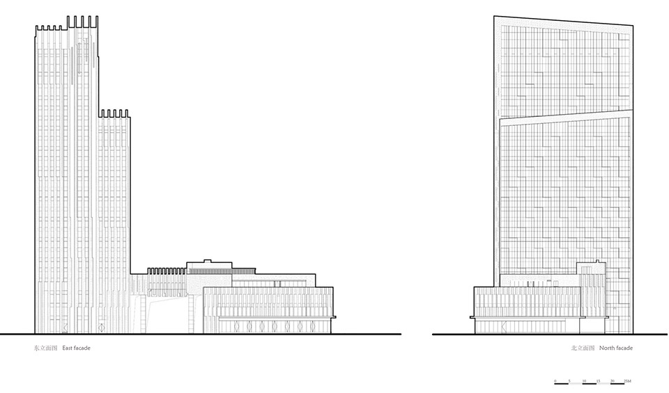 创作选择回到了中国文化的原点一一山岳崇拜,表情试图表现出一种如同华山一样的坚硬质感和张力来试图表达该建筑在这个城市灰色地段崛起的决心。这种非建筑符号化的抽象赋予了城市表情更多的想象力和解读方式,正是这种宽容度才体现出城市空间想象力的民主而非秦式唐风般的强势输入。