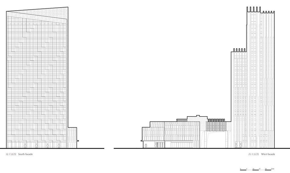 The choice of creation has returned to the origin of Chinese culture—mountain worship. The expression aims to convey a sense of rigidity and tension, akin to the Huashan rock formations, to express the determination of the building to rise in the gray area of the city. This non-architectural, symbolic abstraction offers more imagination and interpretation to urban expressions. It is this tolerance that reflects the democracy of urban space imagination, rather than the strong imposition of Qin or Tang styles.