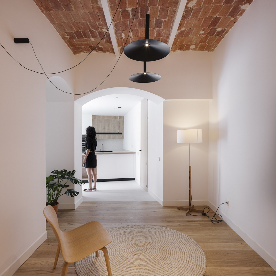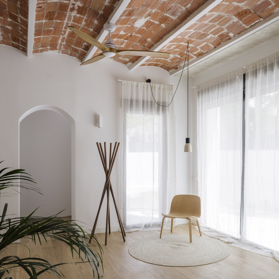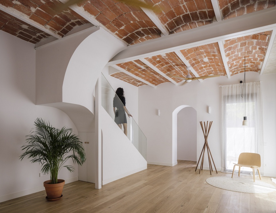 因此,我们对房屋内部进行了改造:拆除了几处天花板,露出了加泰罗尼亚的拱顶,这种拱顶在马德里并不像在西班牙其他地区那样常见。经过精心修复后,这些拱顶将成为彰显干预措施特色的元素,使建筑处于其应有的位置。另一方面,我们展示了其壁画特征。