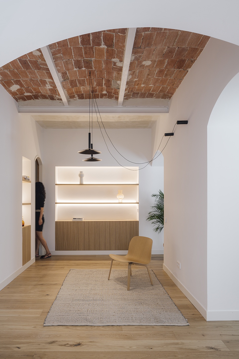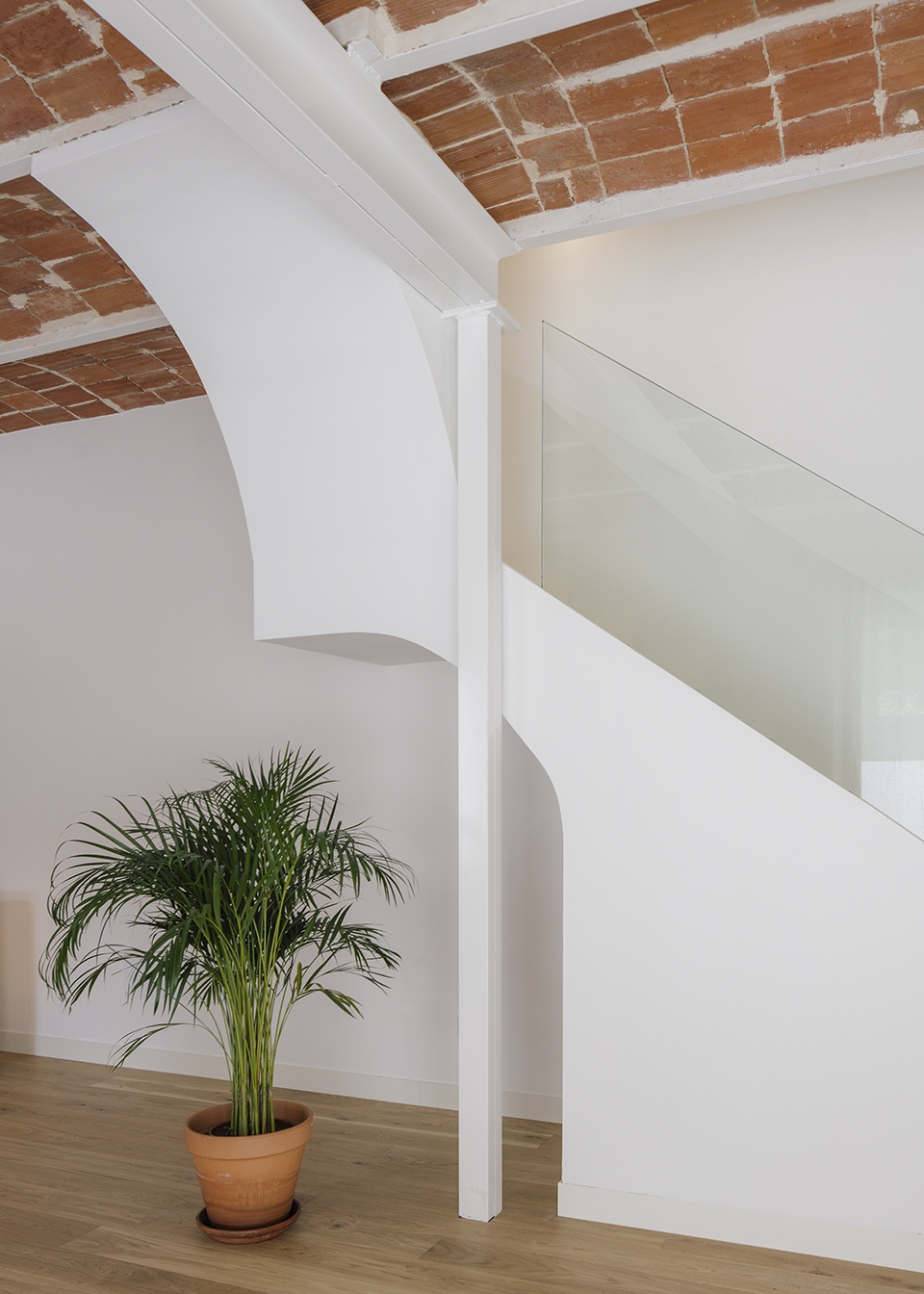 Therefore, we rip the interior of the house out: we eliminated several ceilings, exposing the Catalan vaults, not as common in Madrid as in other Spanish areas. After the careful restoration, these vaults will be the elements that give character to the intervention, placing the building in its rightful place. On the other hand, we show its mural character.
