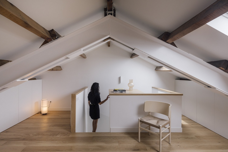 从材质上看,该项目表现出了自己的特色;原始砖块与地板、家具和木工用的橡木相得益彰,白色涂料则是每个房间的总体背景。