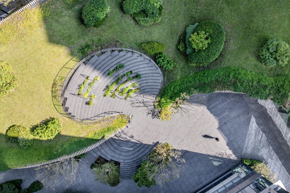 A garden-like museum was inserted at the foot of a high-rise building in Taichung. By creating a green museum on a site facing “Calligraphy Greenway,” the center of Taichung City’s green network, the public green network and private development are seamlessly connected through greenery.