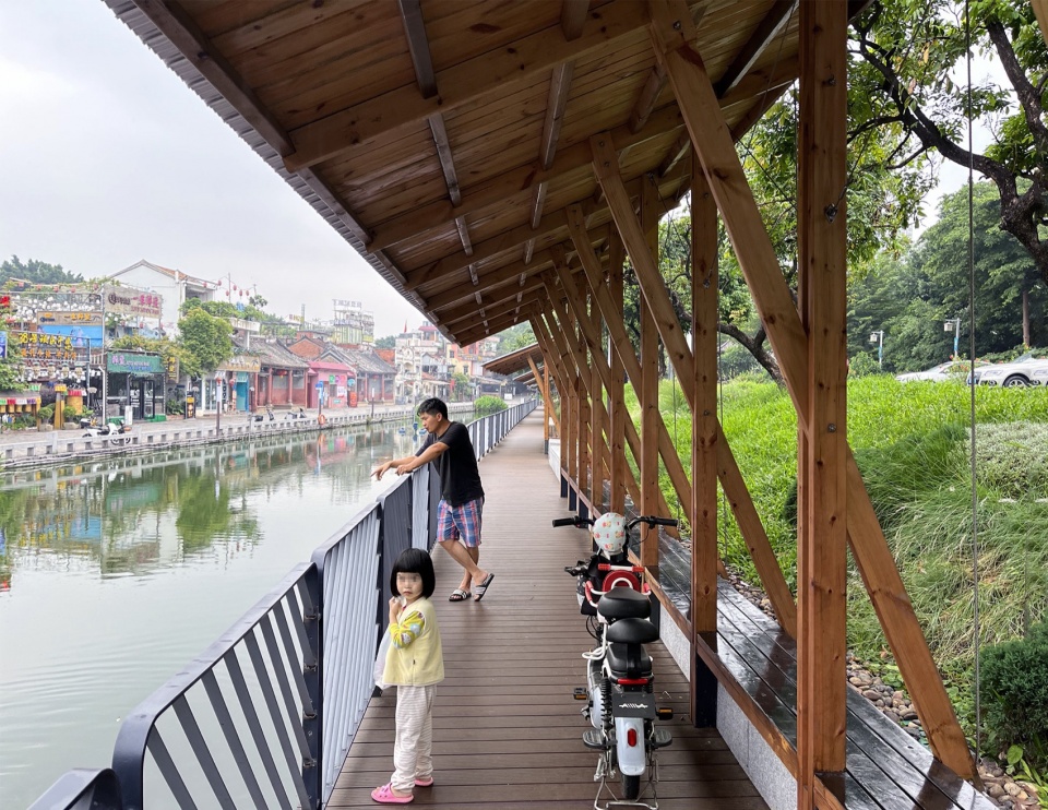 ▼依托于原有堤岸的步道,pathway utilizing the existing embankment wall