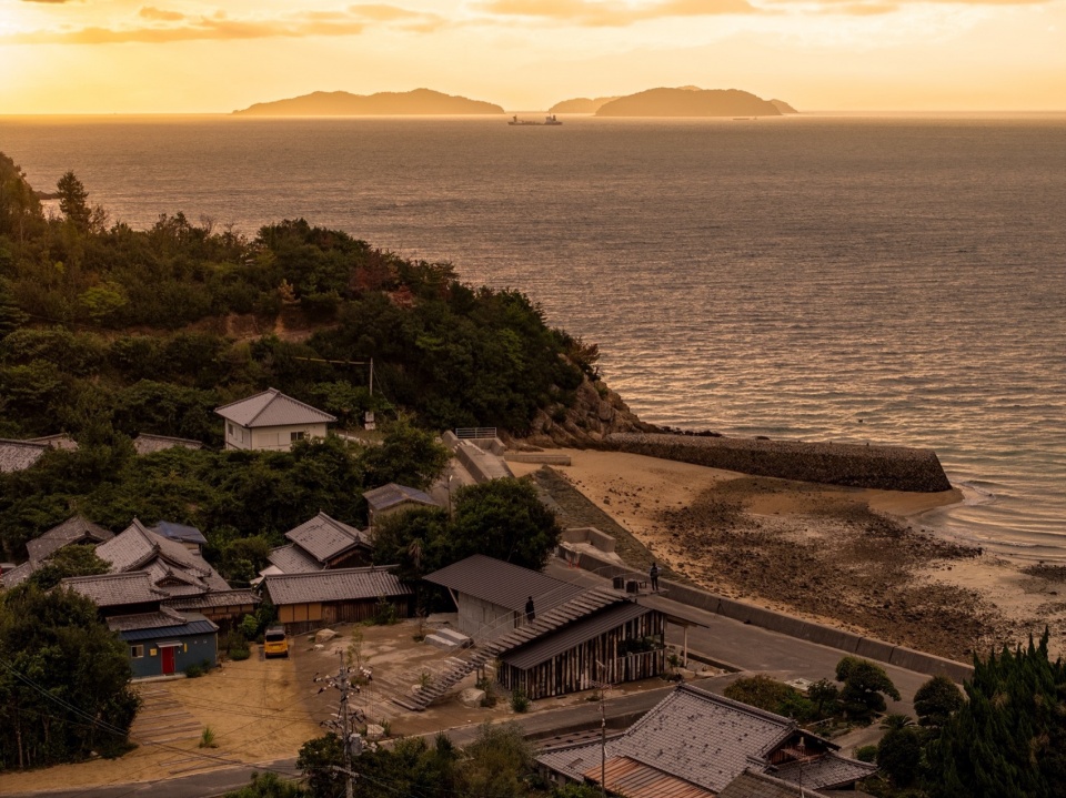 通往餐厅的步道融合了公路电影般的野趣植被与木枕步道,拾级而上,步履间可远眺濑户内海,感受海风轻拂。