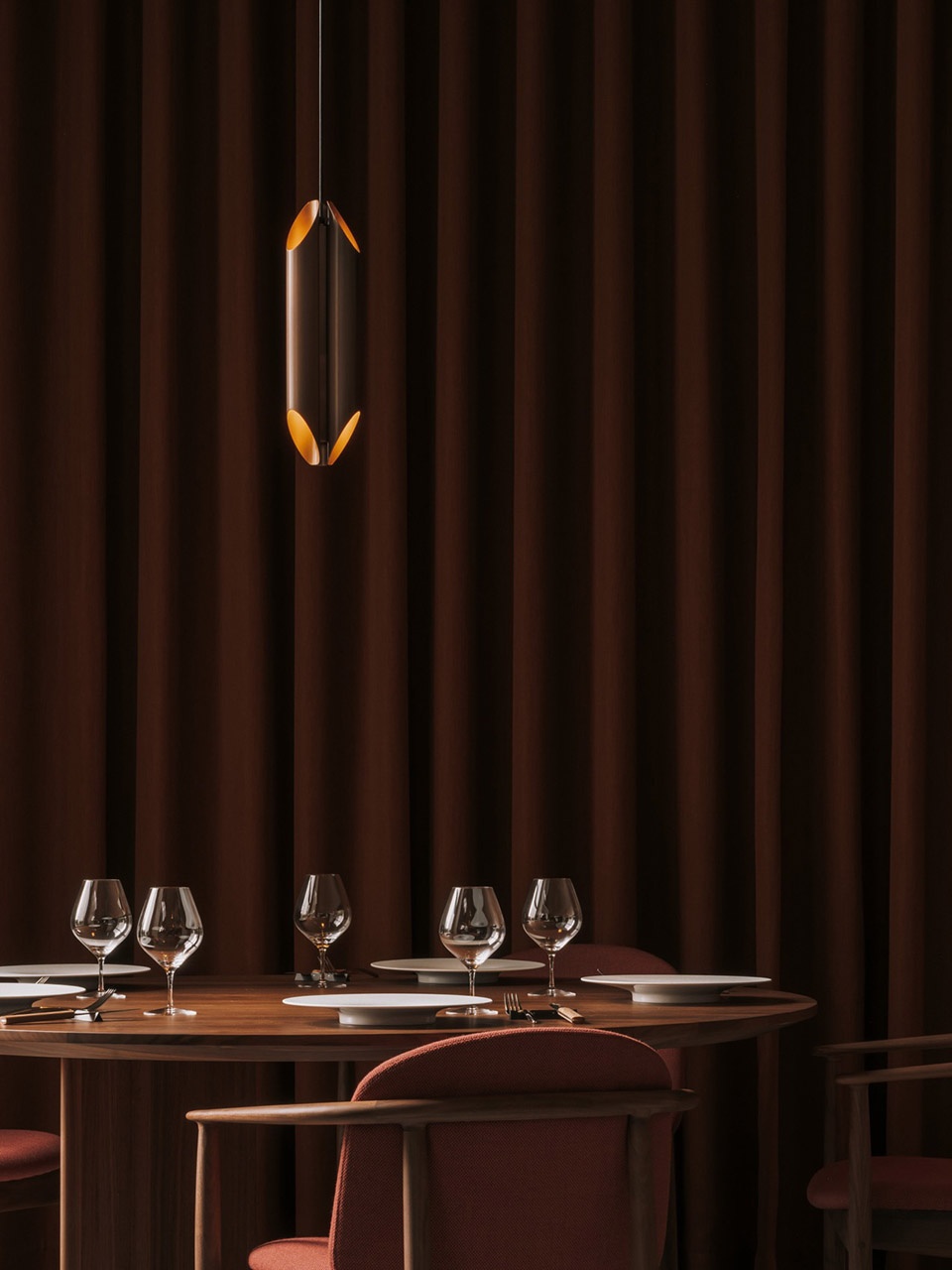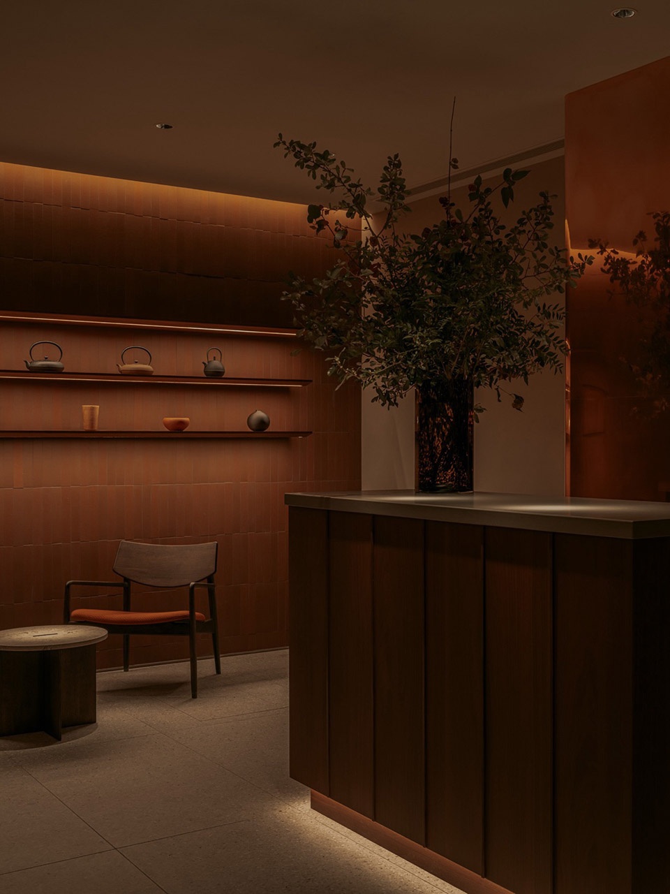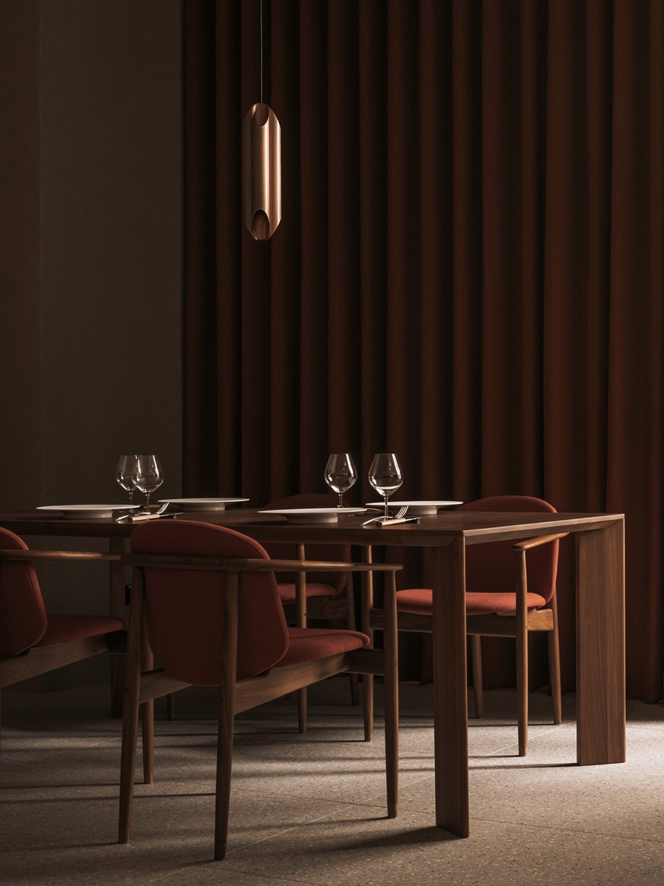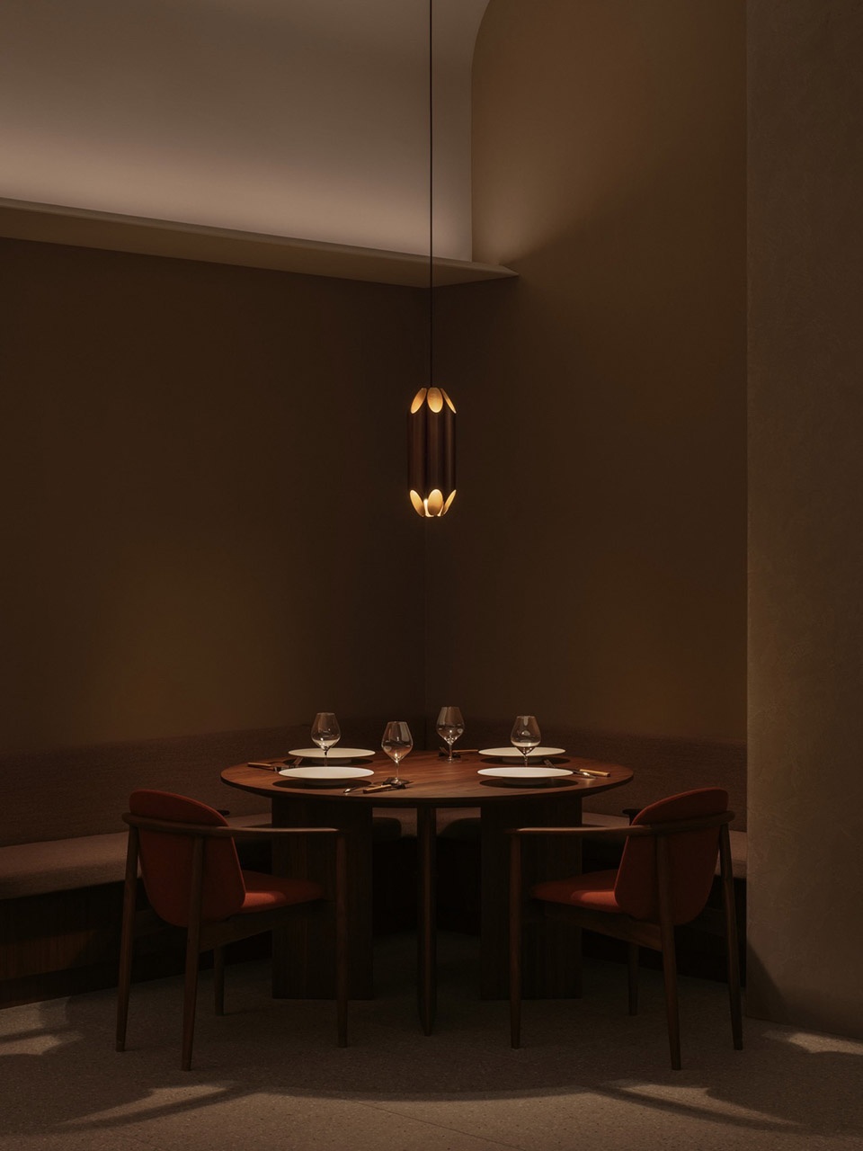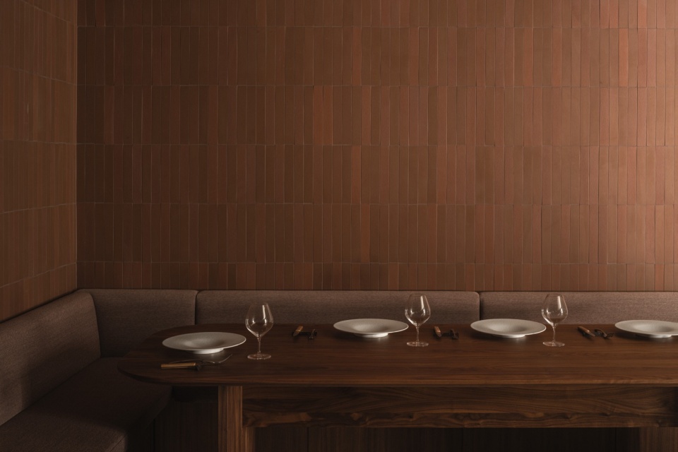 the colour palette of the restaurant is rooted in warm, earthy tones