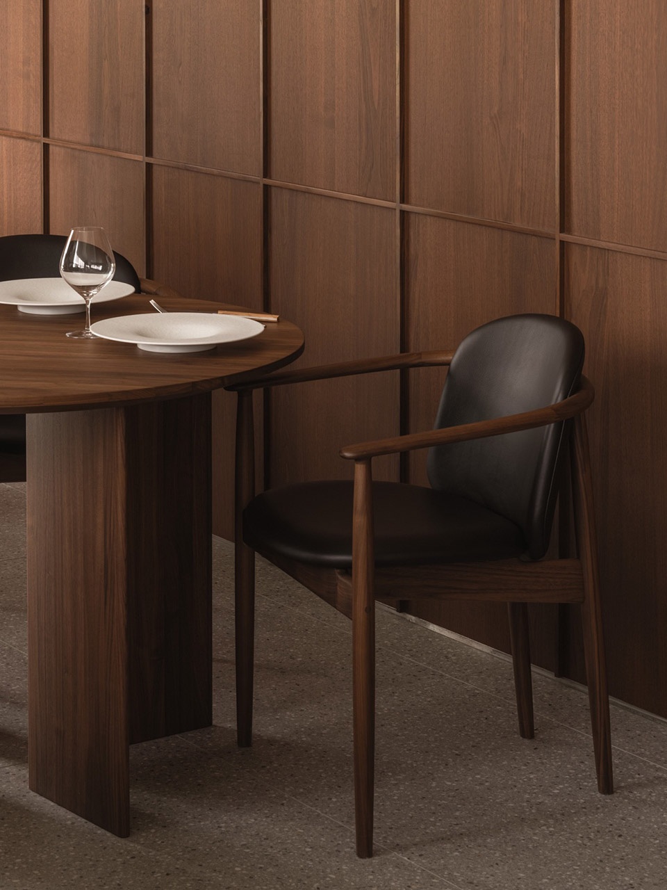 所有家具均为定制设计,以Karimoku Case系列的胡桃木作品为主。餐厅采用圆桌座位布局,体现台湾的餐饮文化。此外,Keiji Ashizawa特别为该空间定制了 A-DT03|餐桌的专属版本。而全新设计的 A-DC05|餐椅配备高靠背,为宾客提供更舒适的就餐体验。