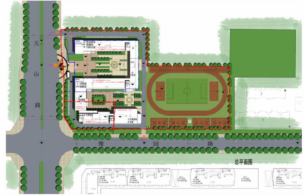 该项目位于郑州市中原区。建筑立面采用序列的造型丰富了建筑的视觉效果,建筑各处布置着不同的学习空间,内廊贯通整个学校,建筑体内拥有各自不同特色的学习空间。