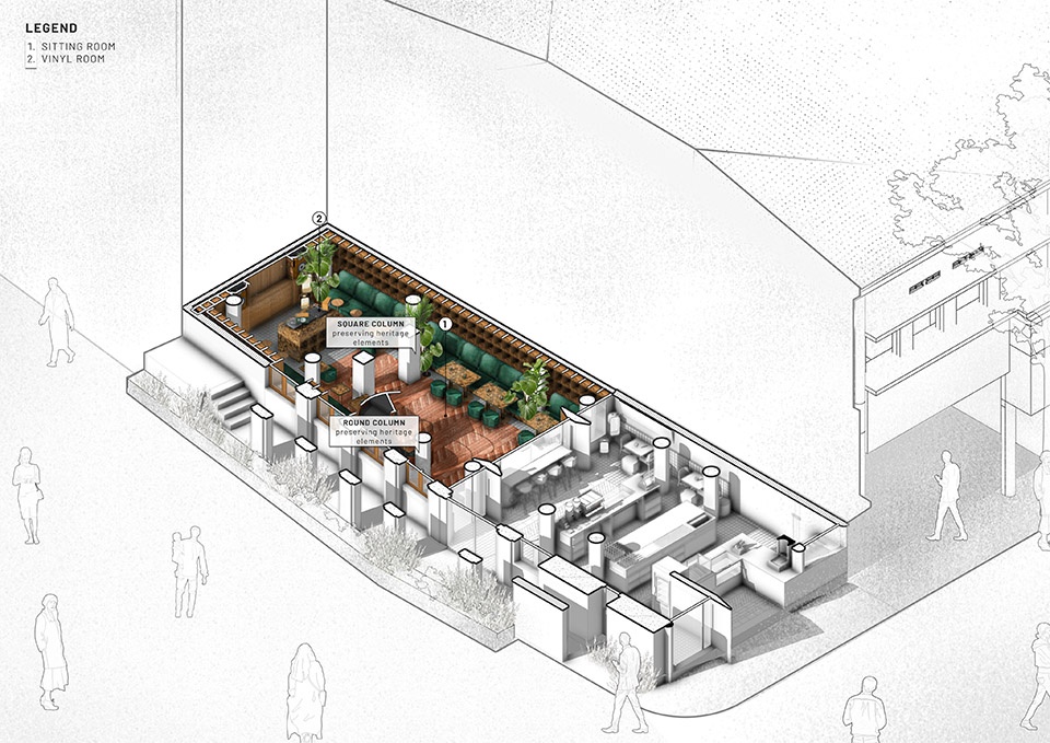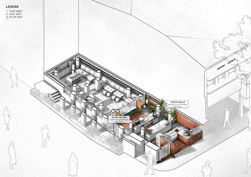 Braga Street is located in the center of Bandung, Indonesia, and is known for its 100-year-old Dutch shophouses, which became famous in the 1920s as a promenade street during the colonial era. The European ambiance of cafes, boutiques, and restaurants along the street helped Bandung earn the Dutch nickname “Parijs van Java” (“Paris of Java”). Therefore, the project emphasizes humility, tradition, and site awareness while fostering a quiet integration that responds to existing needs.