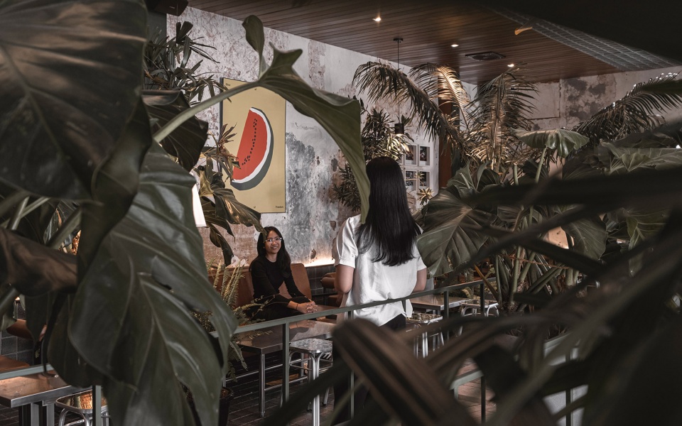 ▼灯光与绿植营造的氛围,Lighting and greenery create the ambience