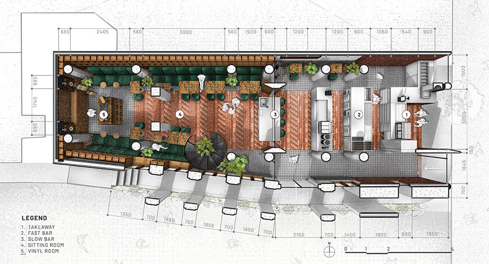 Tanatap遗产花园是一个小型建筑干预项目,成功将一座曾经作为障碍的平庸垂直建筑,转变为一个庆祝其历史意义的创意融合点。自项目开始以来,最大的挑战是应用主要方法,将现有的荷兰遗产商铺结构改造为位于万隆Braga街区中间的餐厅和咖啡馆。这个原本是仓库的棚屋使我们能够利用许多来自其前身的原始元素,例如现有的框架、墙壁和立面。