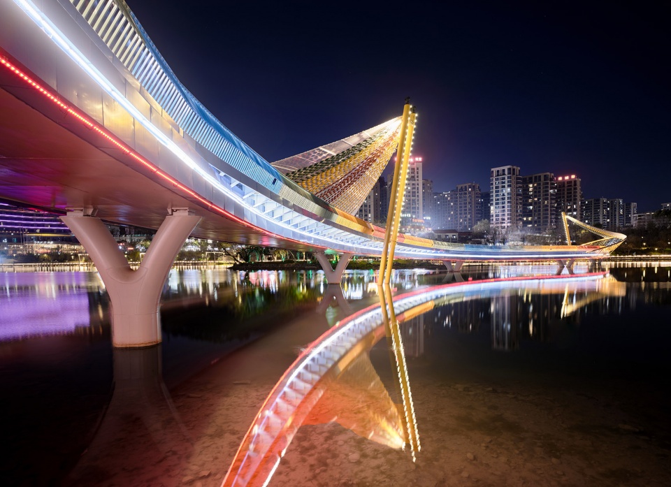 The Aotan Scenic Bridge, with a posture of effortless grace, has achieved the integration of multiple value dimensions — it is a work of engineering precision, bearing the complex traffic demands of the two banks; it is a tangible declaration of ecological wisdom, with the expansive waters beneath the bridge witnessing the revival of biodiversity; and it is a container of cultural memory through time and space, the modern reinterpretation of traditional corridor bridges narrating the enduring vitality of Chinese culture.When the ETFE membrane roof refracts rainbow – like glows resembling butterfly wings in the dusk, this bridge has long transcended its original mission of physical connection. It is like a delicate thread, precisely stitching the spatial discontinuities of the city; and it is also like a brush dipped in nostalgia, writing the poem of contemporary construction on the waterside scroll. Here, engineering and art, tradition and modernity, humanity and nature achieve a delicate balance, redefining the cultural benchmark of infrastructure. The Aotan Scenic Bridge has become a new urban landmark exploring the interweaving of nature and humanity. The practice of this innovative bridge enlightens us that contemporary infrastructure construction has gone beyond the mere provision of functions and is evolving into a composite form of cultural heritage innovation laboratory, ecological wisdom display window, and social governance test field. The key to its success lies in the establishment of a triple – value system of “functional carrier – cultural container – ecological interface,” providing a universally meaningful “Kaihua solution” for new – type urbanization construction.