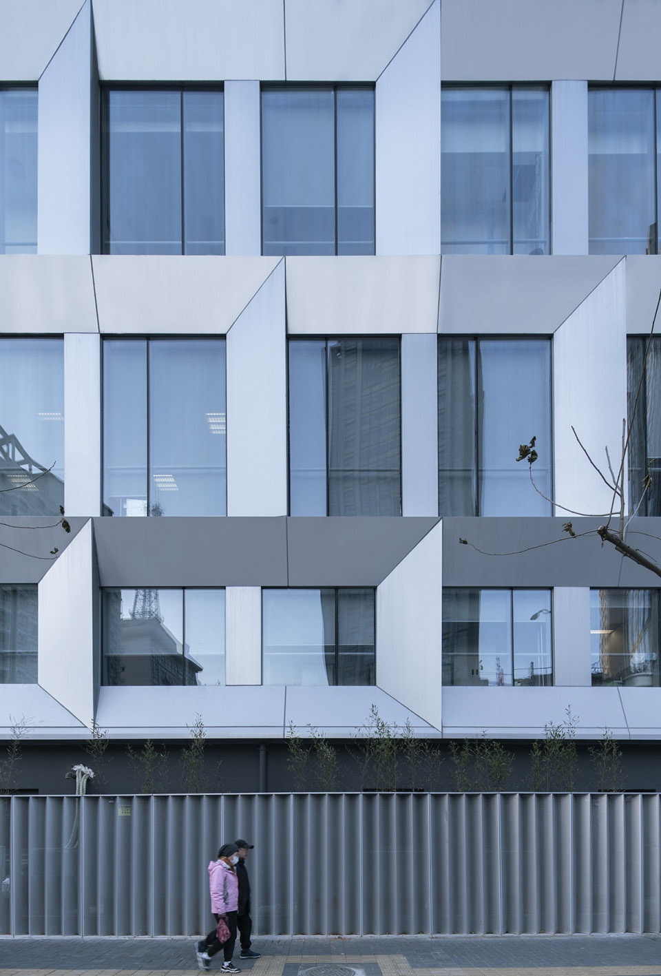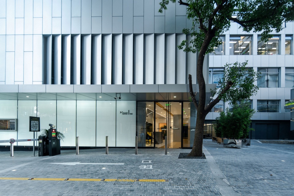 We have preserved the existing floors and structures for the street elevation. When guaranteeing the fire safety, floor-to-ceiling window systems were used to fill the framework. The large glass façade is mostly kept integrity, only covering the side openings with perforated panels. The aluminum curtain wall features rhythmic concave-convex patterns on main window piers, while adopting smooth surface on the large gable walls, with limited variations. Bathing in the sunlight, this silver curtain wall looks like a flowing metallic cloak, distinguishing the building from its surroundings.