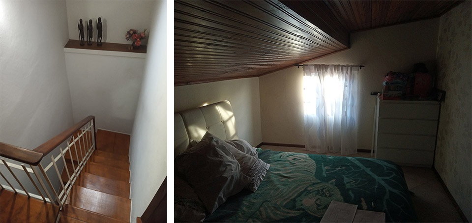 The existing interior has monotonous, divided, small and gloomy spaces. It consists of a central space, with high ceilings, facing north and south, but surrounded by four other small spaces to the east and west (bedroom, kitchen, sanitary installation, storage). These are connected directly by interior doors, which multiplies the routes and consequently conditions the habitation of the admittedly central/main space.On the top floor, in the attics, two bedrooms and a storage space. The connection between them is made by a staircase, built between walls and of reduced size. It is clearly an organization that grew out of need.In these, without planning, without concepts, functionalist spaces, the protagonist is the man.