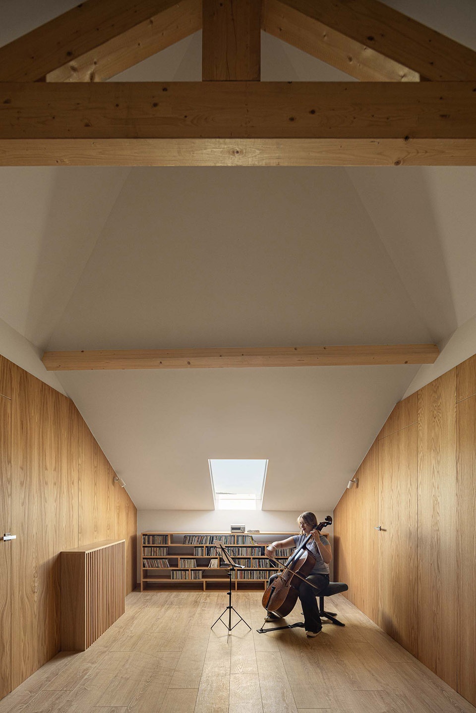 the vaulted ceiling becomes the central visual element of the space