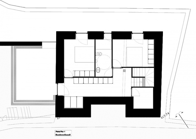 The upper floor consists of a central office, support room, sanitary installation and storage. On the lower floor, semi-buried, there are two bedrooms, a bathroom and a laundry room. On these floors, for private use, tranquillity reigns through natural northern light. A light, faint, constant, synonymous with serenity.