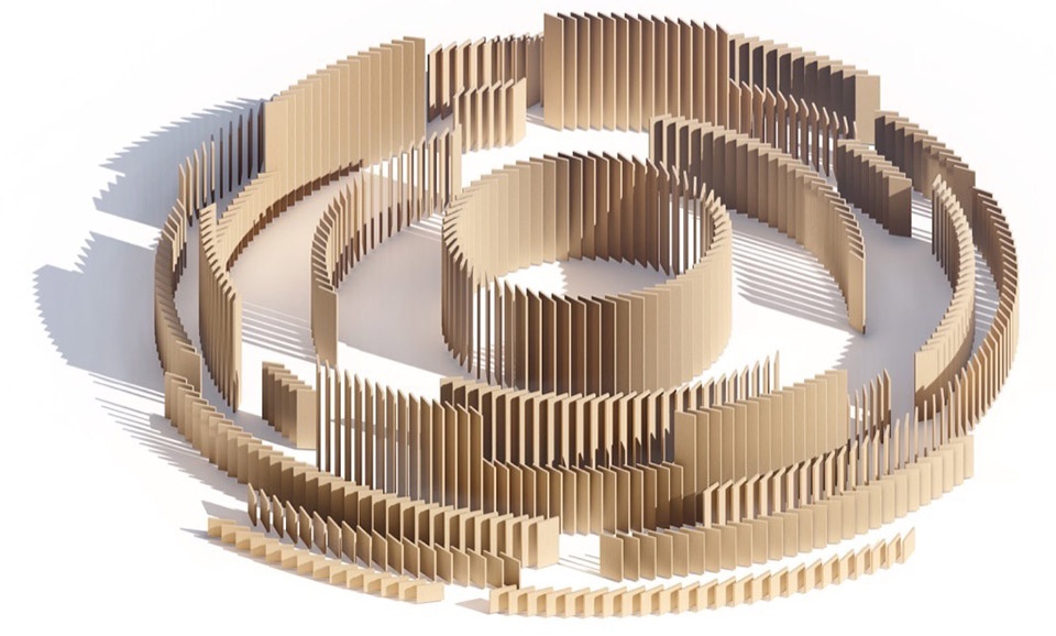 The Japan Pavilion at Expo 2025 Osaka, Kansai, serves as the official pavilion of the Japanese government. Designed in response to its exhibition concept “Between Lives,” the architecture embodies themes of “the relay of life” and “the cycle of life” through a repetitive, staggered arrangement of cross-laminated timber (CLT) panels in a concentric circular formation.