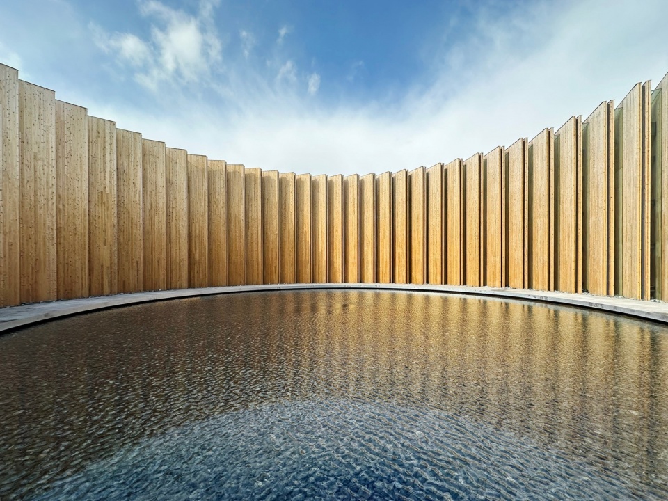 At past Expos, pavilions were often designed as independent white cubes, with little to no integration between the exhibition and the architectural design. This project, however, sought a seamless integration of exhibition planning and architectural design, developing both in parallel. To complement the exhibition content, the pavilion creates a variety of “exhibiting environments”: including a bright, open atrium that allows natural light to filter through the membrane roof, a softly illuminated space with skylights that accentuate the texture of CLT surfaces, a darkened room with a low ceiling that encourages visitors to focus on the displays and an iconic outdoor space centered around a water feature. The provision of diverse exhibiting settings—including indoor and outdoor, light and shadow, and spatially large and small—the pavilion invites visitors to experience the exhibition narrative with all their five senses.