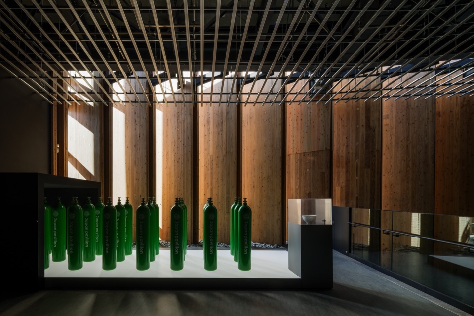 与此同时,将通常看不到的“背面”,即支撑建筑运转的所有设备可视化。一边感受这种平时意识不到的“支撑”,一边在实际空间的真实关系中不知不觉地体验木材香气、温度及外部光线变化等,并将其深深地镌刻在记忆中。我们认为,这种体验不同于肤浅的虚拟世界,它成就的是一个符合本届世博会主题的观展空间。